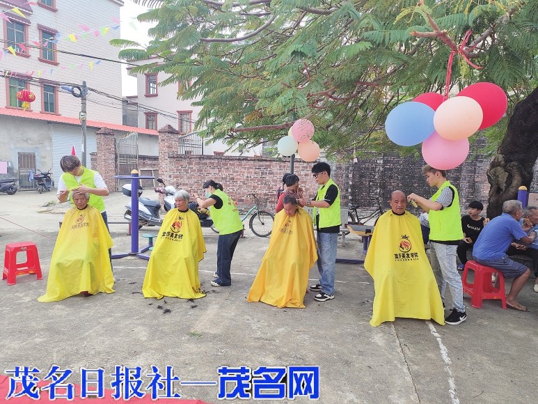 当天,田心村歌舞不断,投掷乒乓球、修指甲等娱乐便民服务多样,场面热闹又温馨。村文化广场上,高州市人民医院的医生以通俗易懂的方式,科普“三高”预防知识,以及季节多发病等慢性病的预防与日常护理;细心梳理了老年人饮食安全清单。该医院血液净化中心青年文明号医务人员则免费为老人测量血压、血糖,提供免费的专业咨询。此外,还有理发师们为老人义剪,用实际行动传递温暖与关怀。