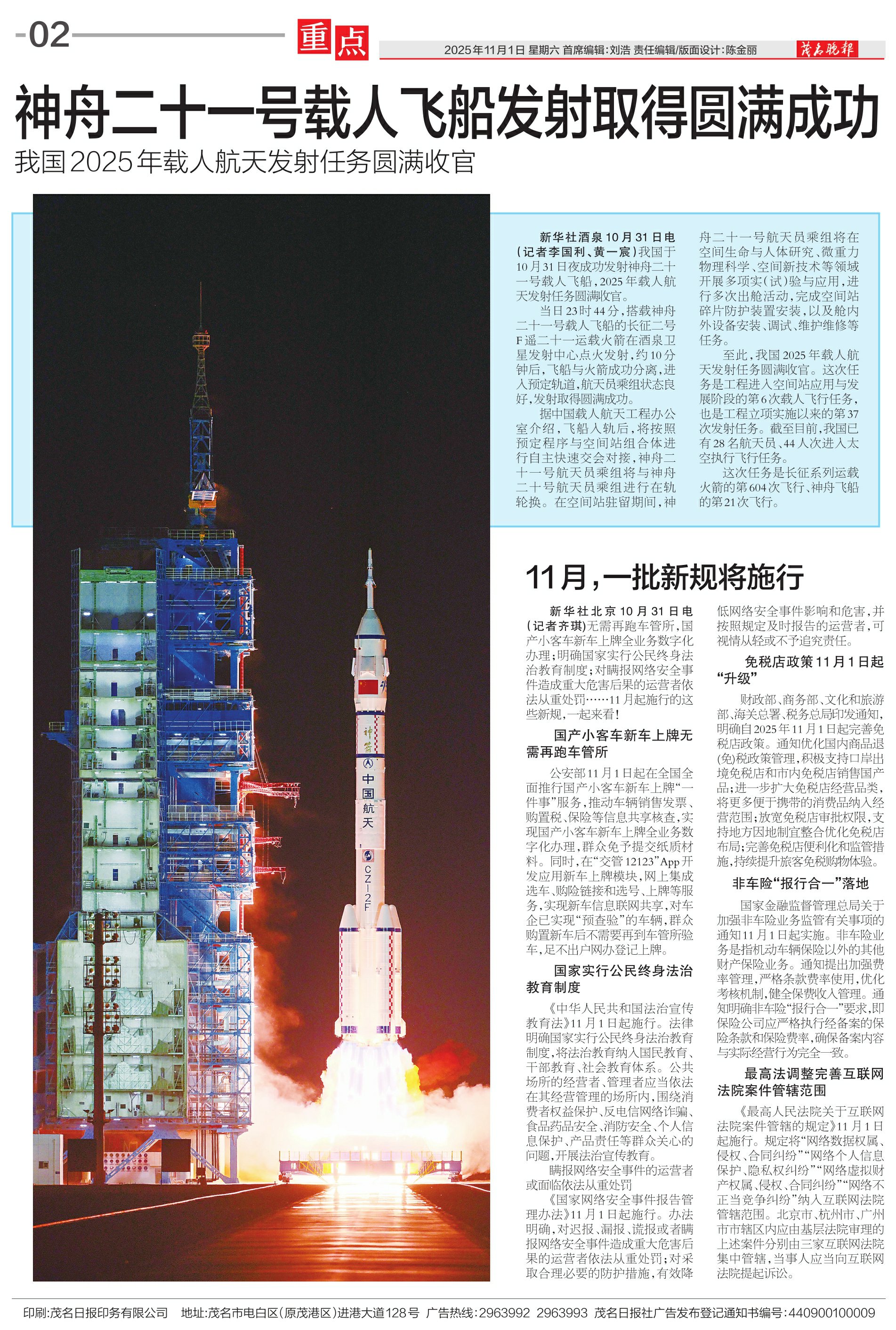 神舟二十一号载人飞船发射取得圆满成功