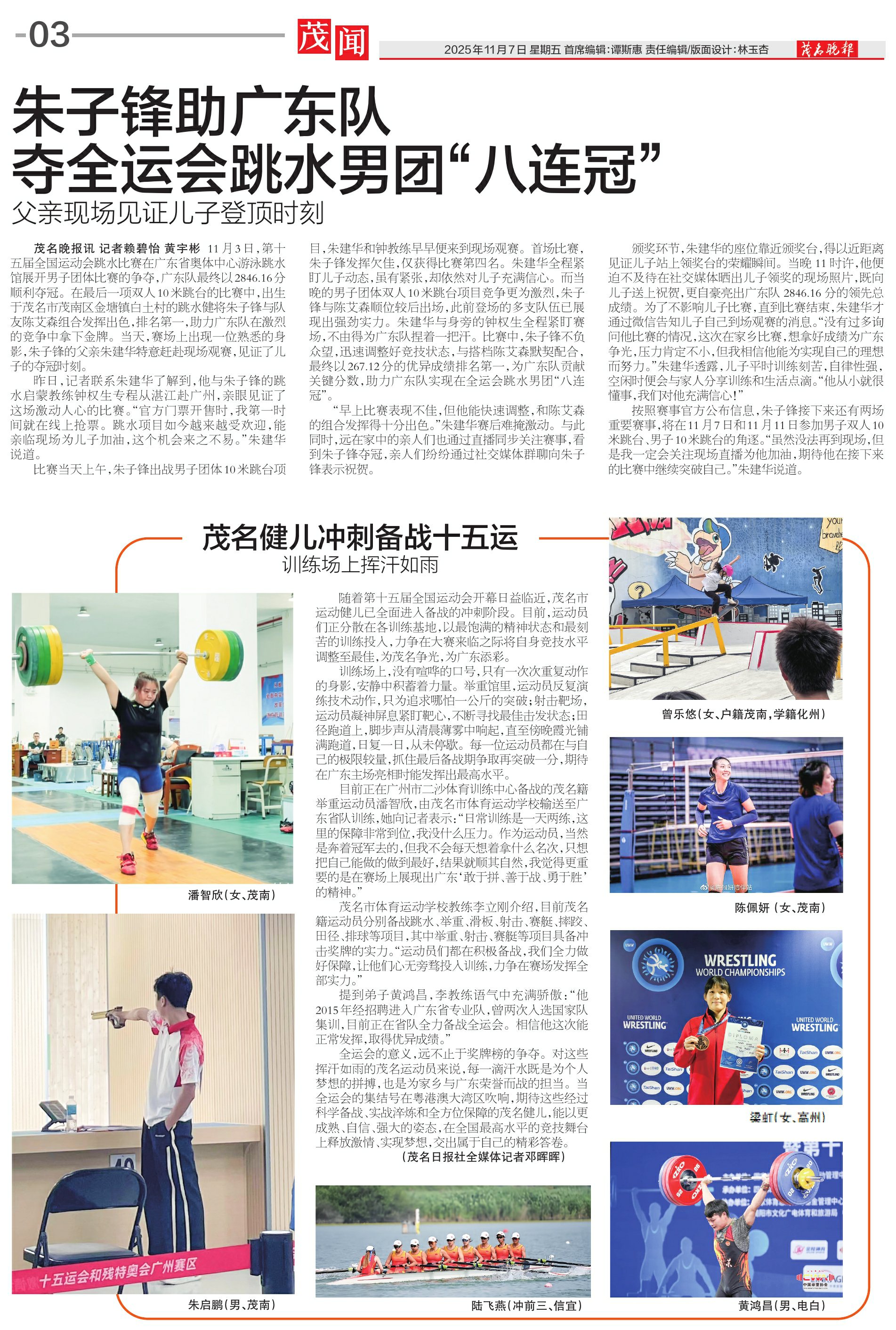 朱子锋助广东队夺全运会跳水男团“八连冠”