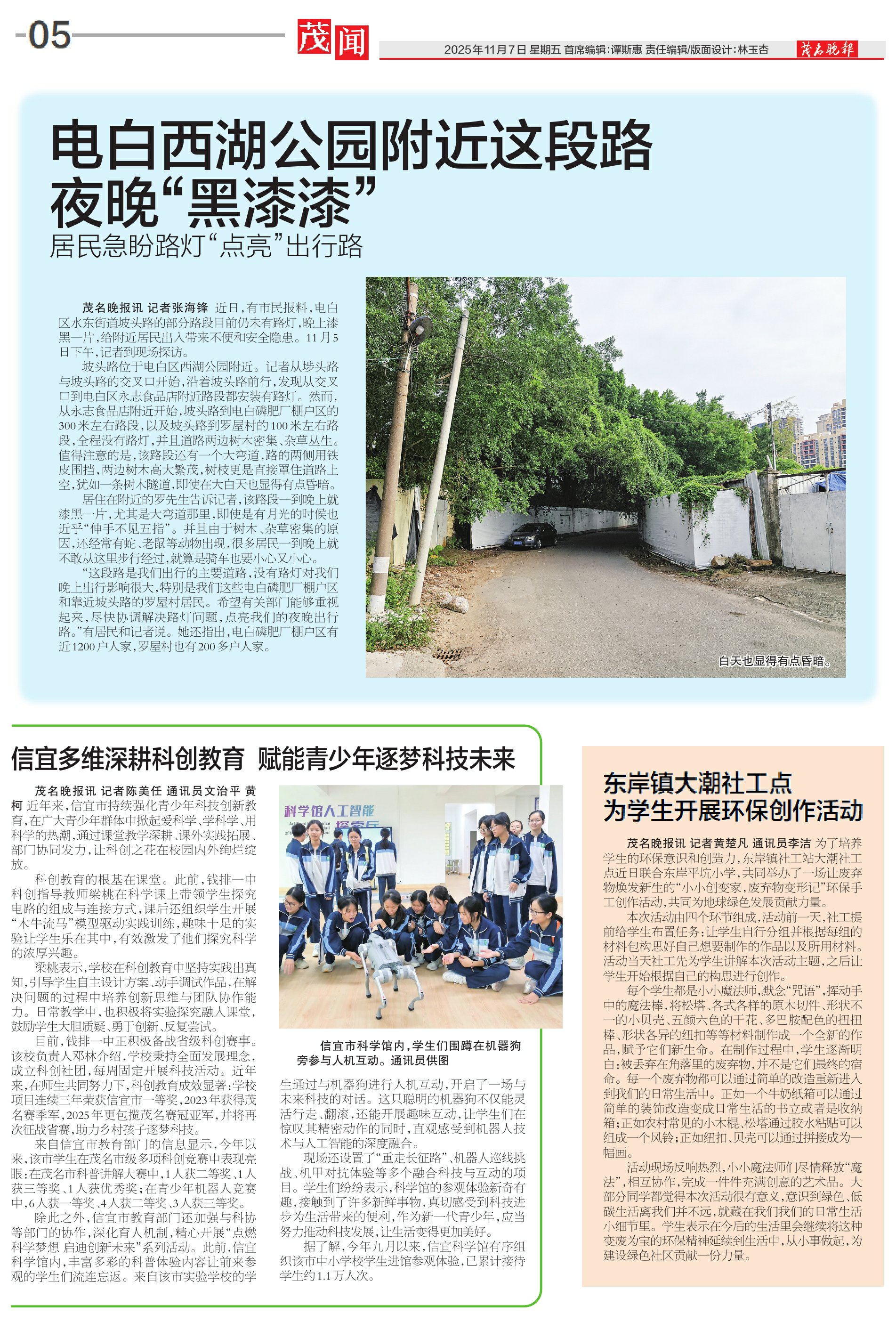 电白西湖公园附近这段路夜晚“黑漆漆”