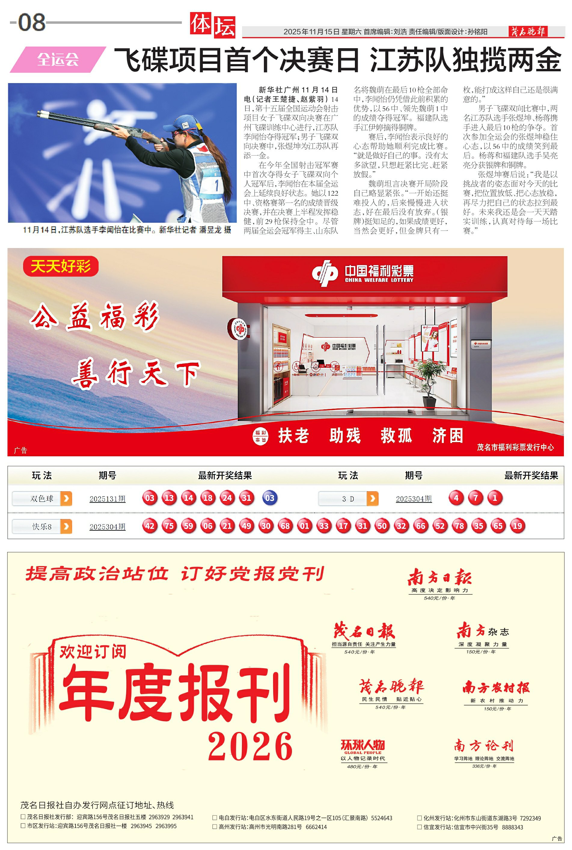 飞碟项目首个决赛日 江苏队独揽两金
