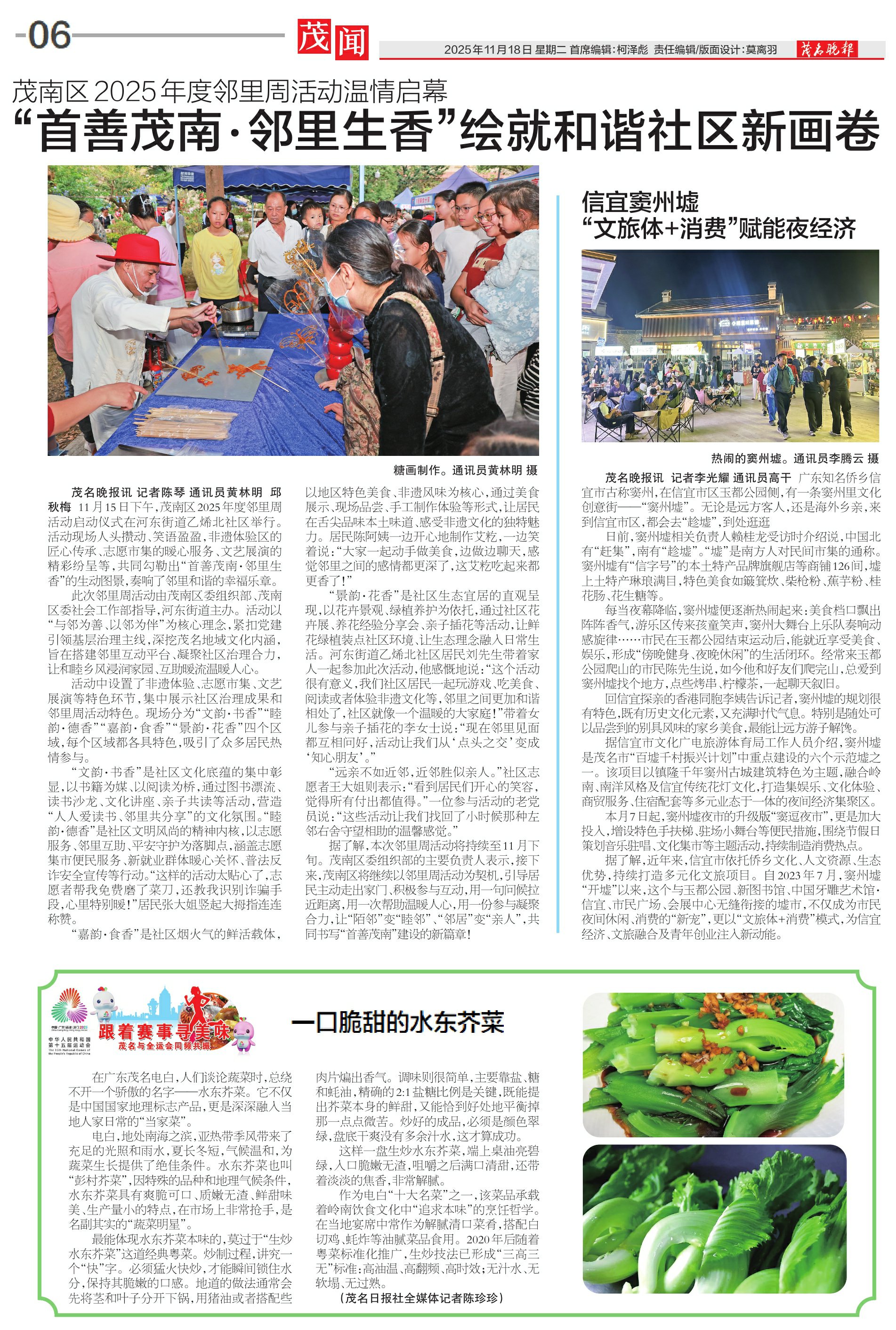 茂名晚报讯 记者 陈琴 通讯员 黄林明 邱秋梅 11月15日下午,茂南区2025年度邻里周活动启动仪式在河东街道乙烯北社区举行。活动现场人头攒动、笑语盈盈,非遗体验区的匠心传承、志愿市集的暖心服务、文艺展演的精彩纷呈等,共同勾勒出“首善茂南·邻里生香”的生动图景,奏响了邻里和谐的幸福乐章。