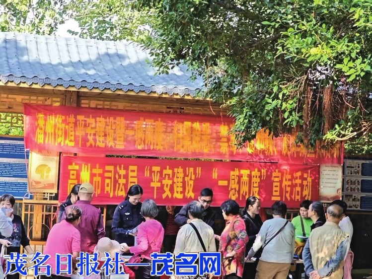 茂名晚报讯 记者 刘锋兰 通讯员 杨艺 为进一步提升辖区居民法律意识和安全防范能力,近日,高州市公安局永镇派出所联合城南派出所、潘州街道办和高州市司法局到瀛洲公园开展“一感两度”(人民群众的安全感,对政法执法工作的满意度,对平安建设工作的满意度)和反邪教、反诈宣传活动。