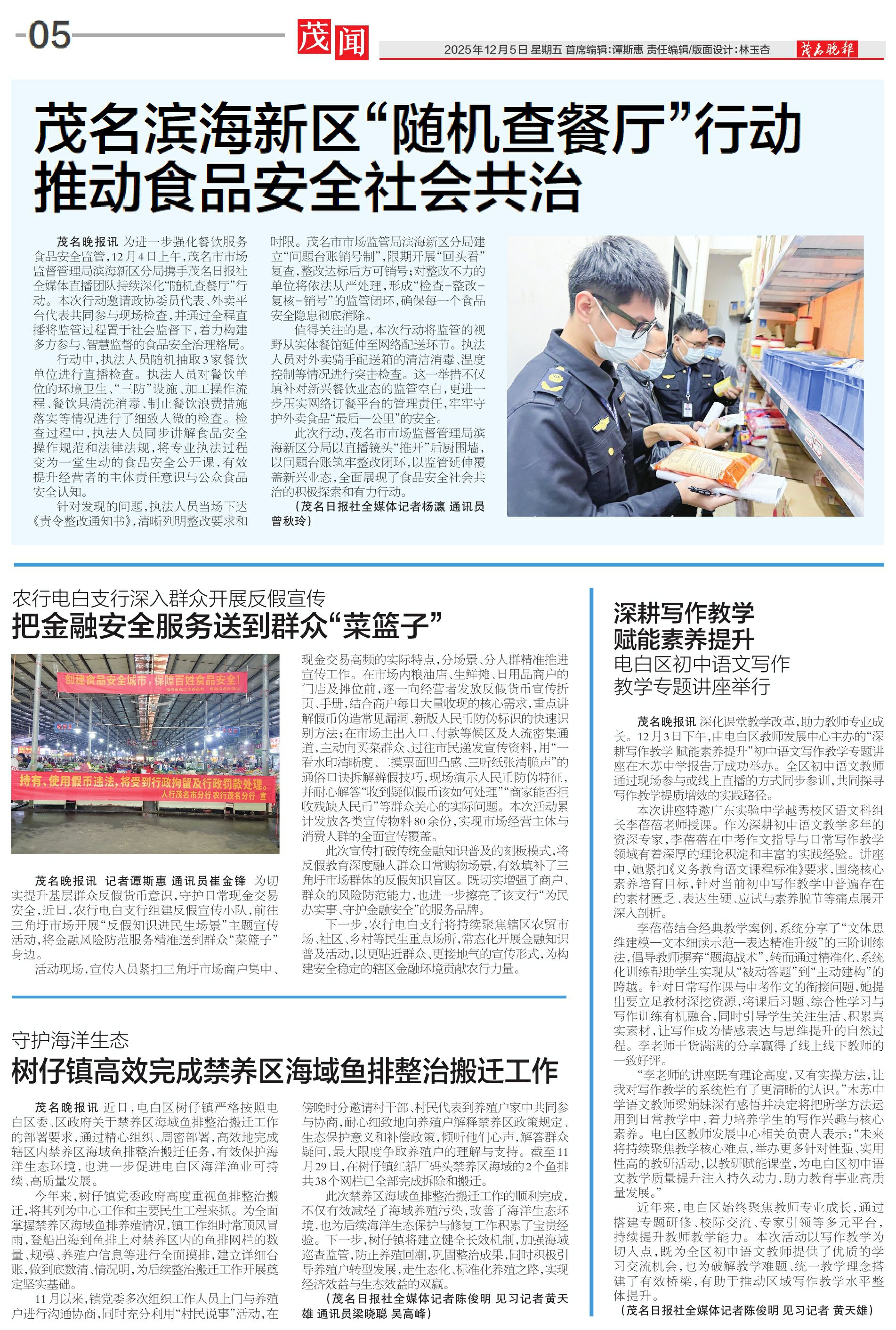 茂名滨海新区“随机查餐厅”行动推动食品安全社会共治