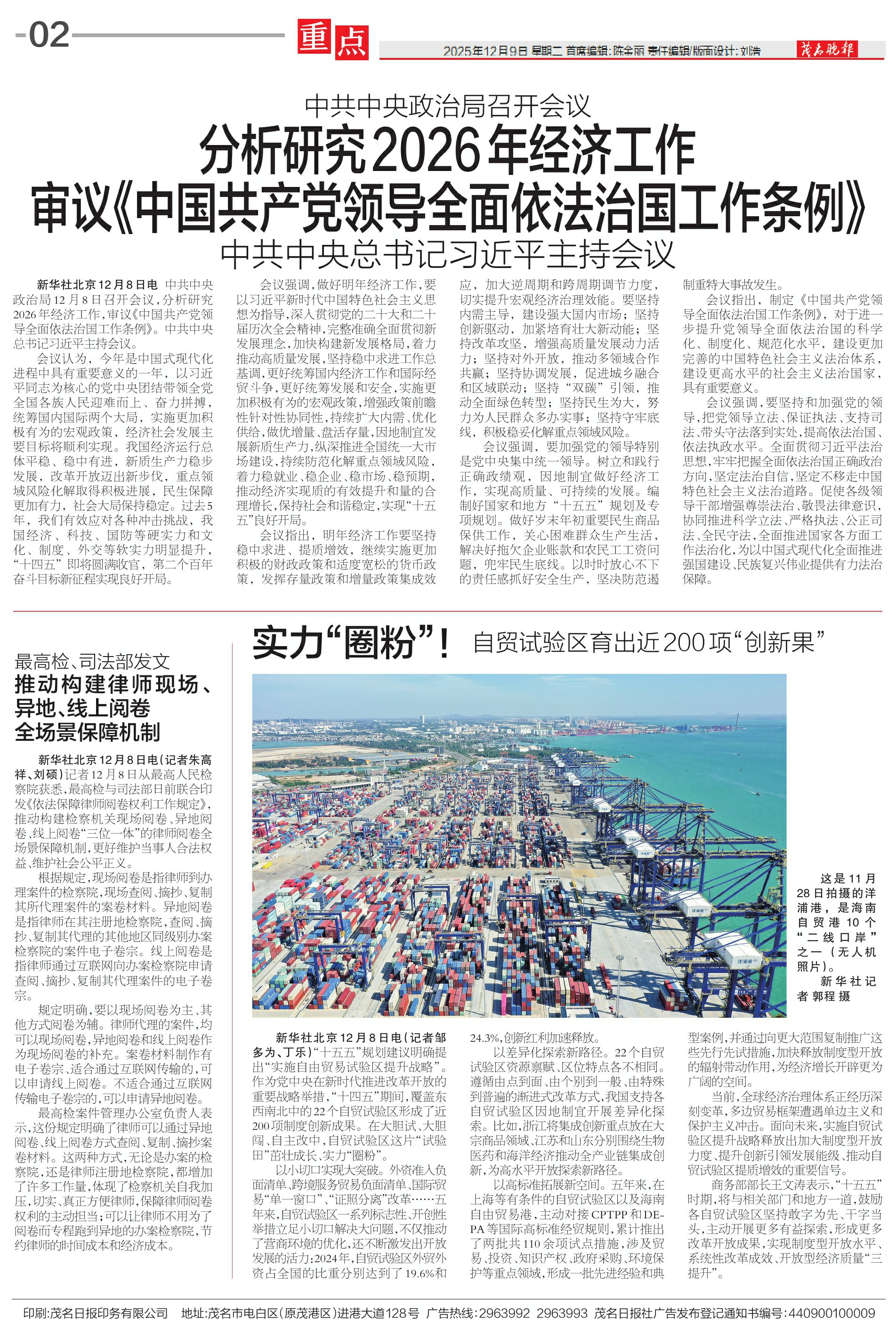 分析研究2026年经济工作 审议《中国共产党领导全面依法治国工作条例》