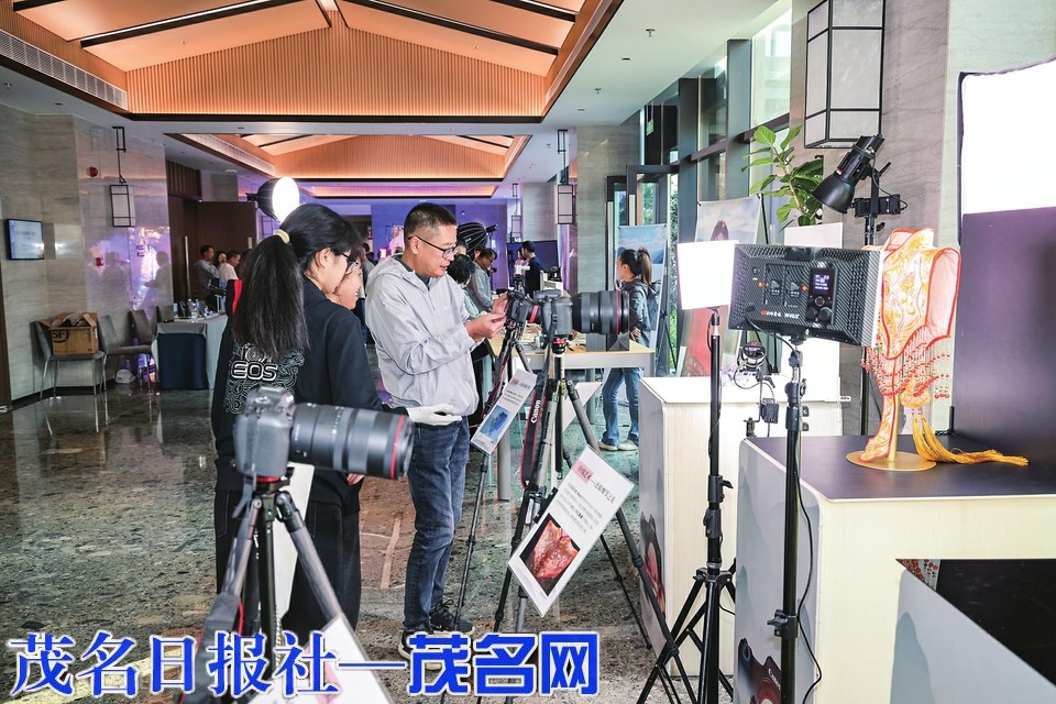 摄影爱好者现场体验摄影器材拍摄。茂名日报社全媒体记者 吴昊 摄