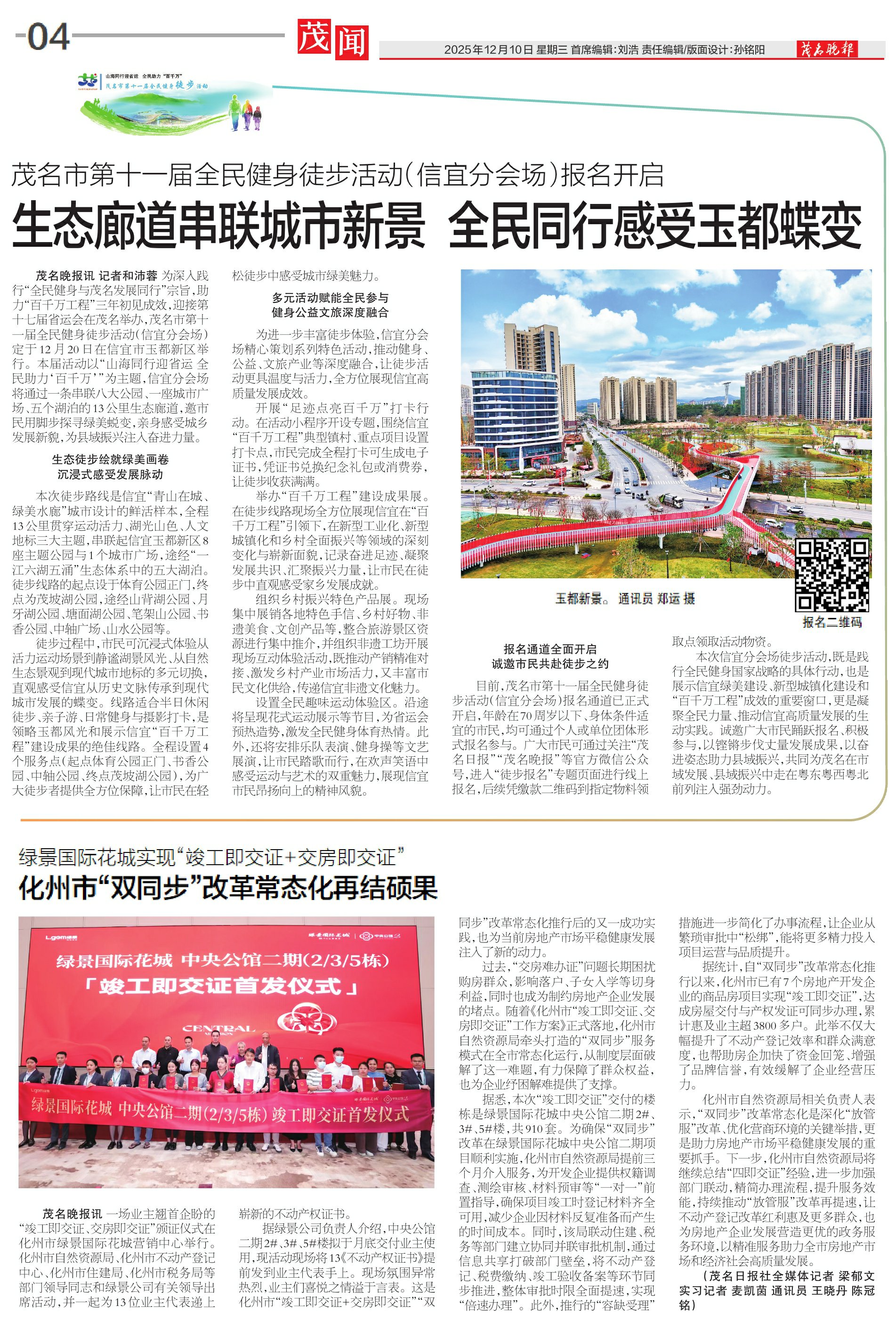 生态廊道串联城市新景 全民同行感受玉都蝶变