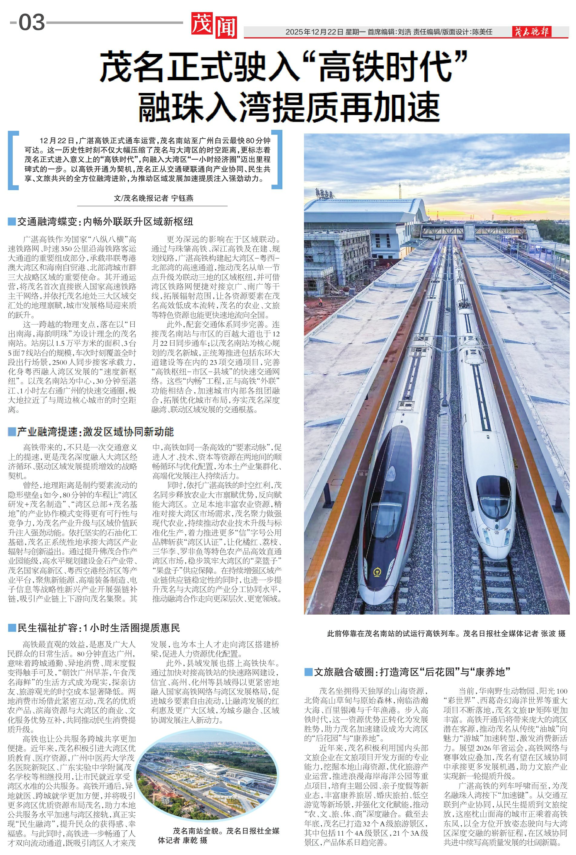 高铁带来的,不只是一次交通意义上的提速,更是茂名深度融入大湾区经济循环、驱动区域发展提质增效的战略契机。
