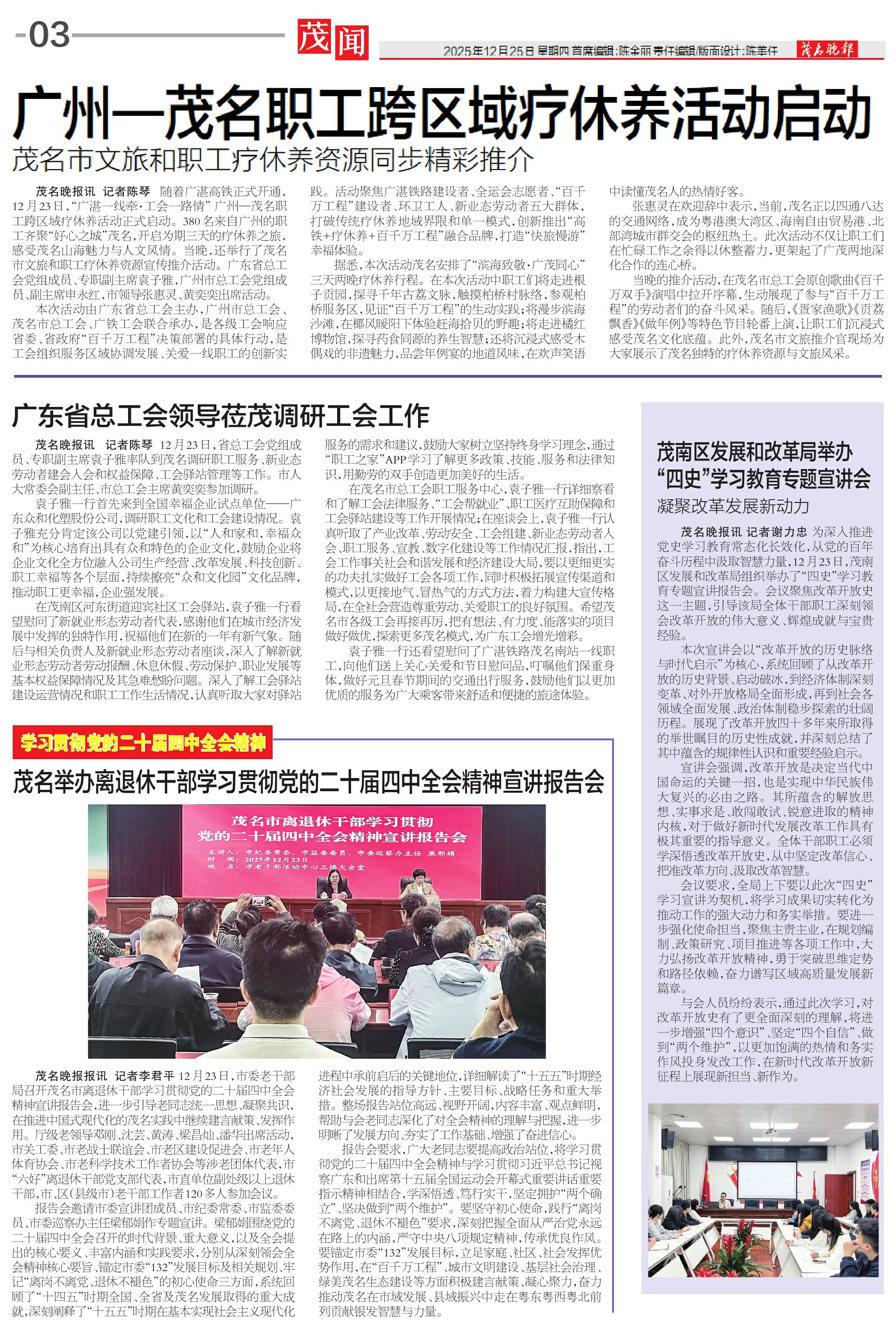 茂名举办离退休干部学习贯彻党的二十届四中全会精神宣讲报告会