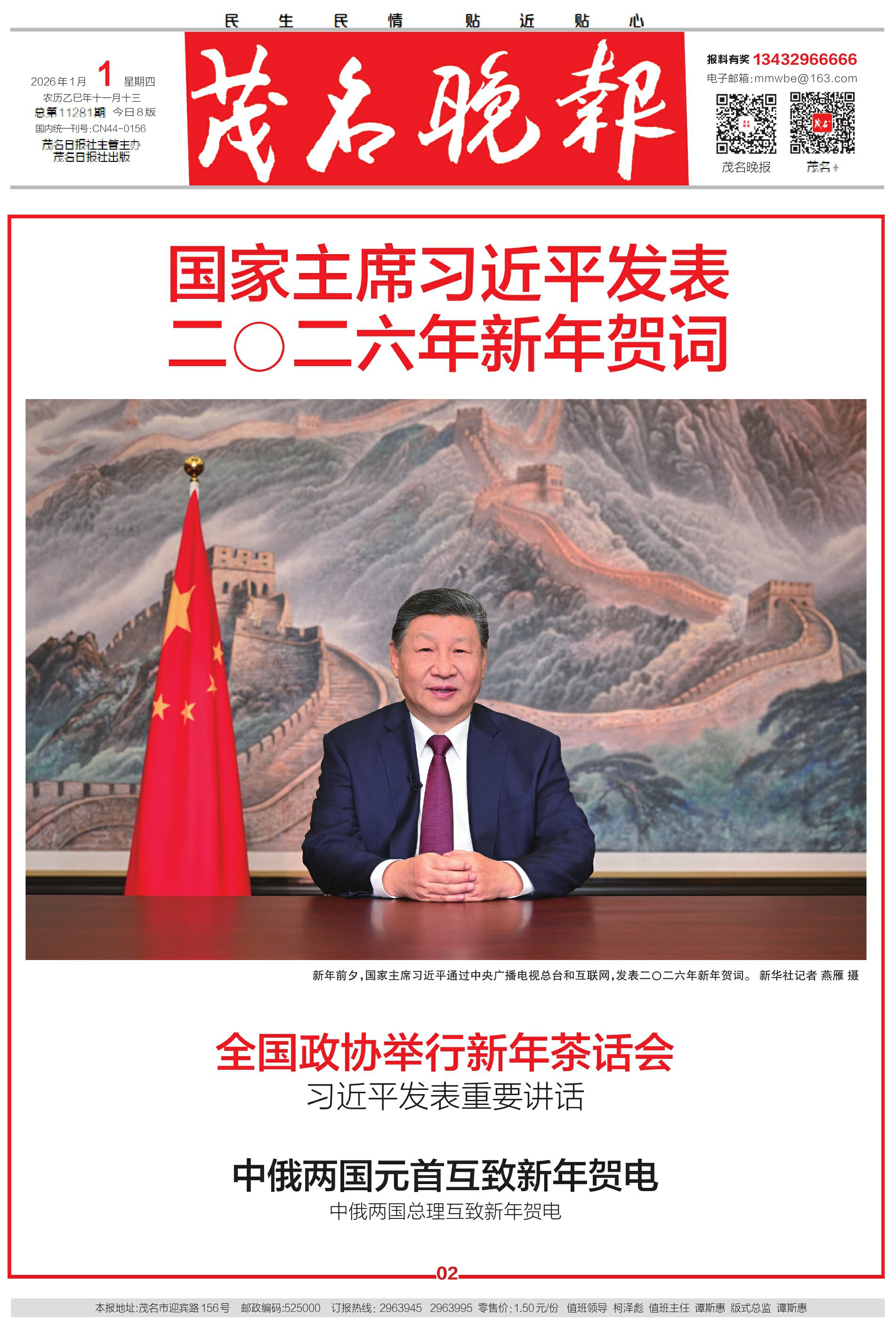 国家主席习近平发表二〇二六年新年贺词