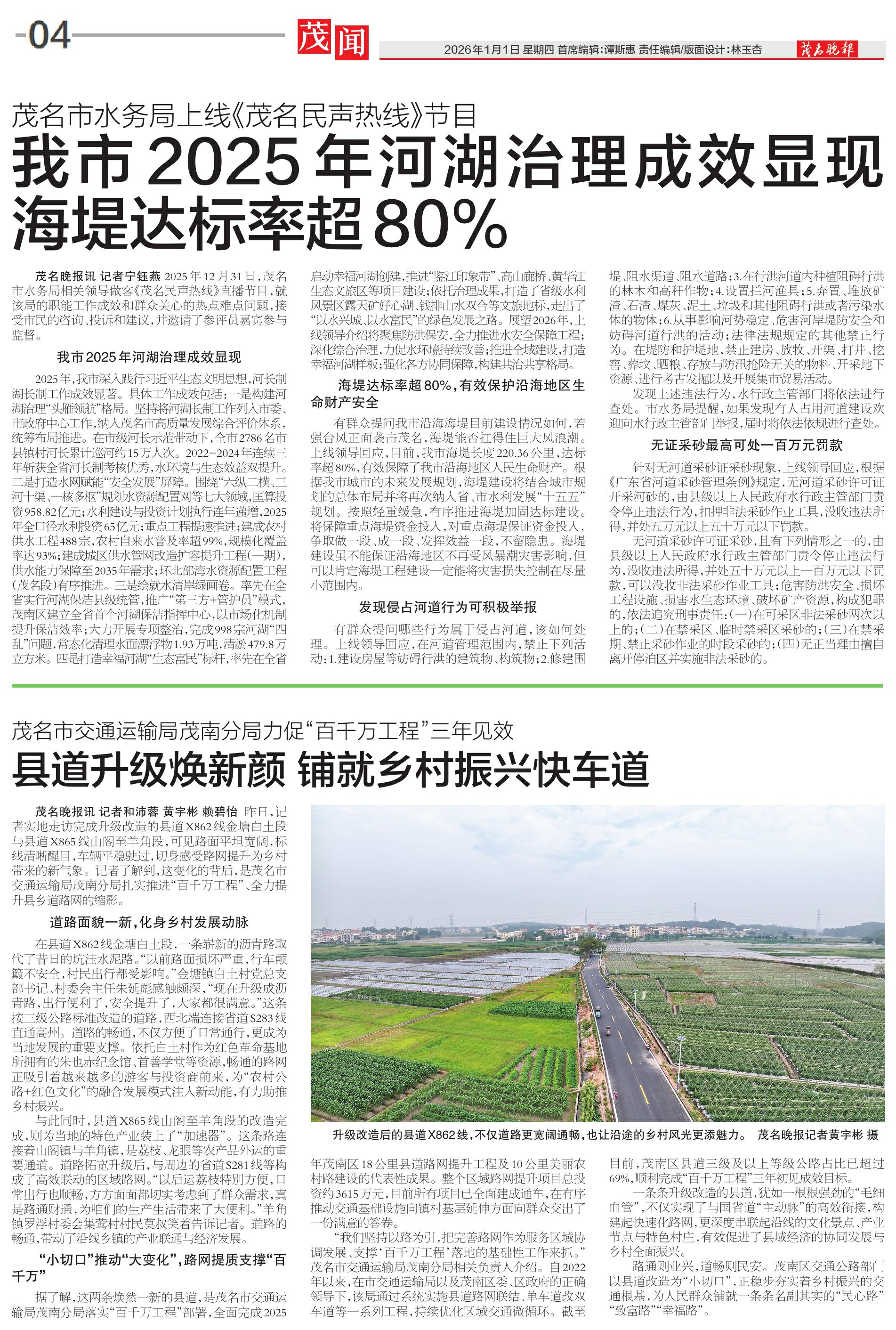 我市 2025 年河湖治理成效显现海堤达标率超80%