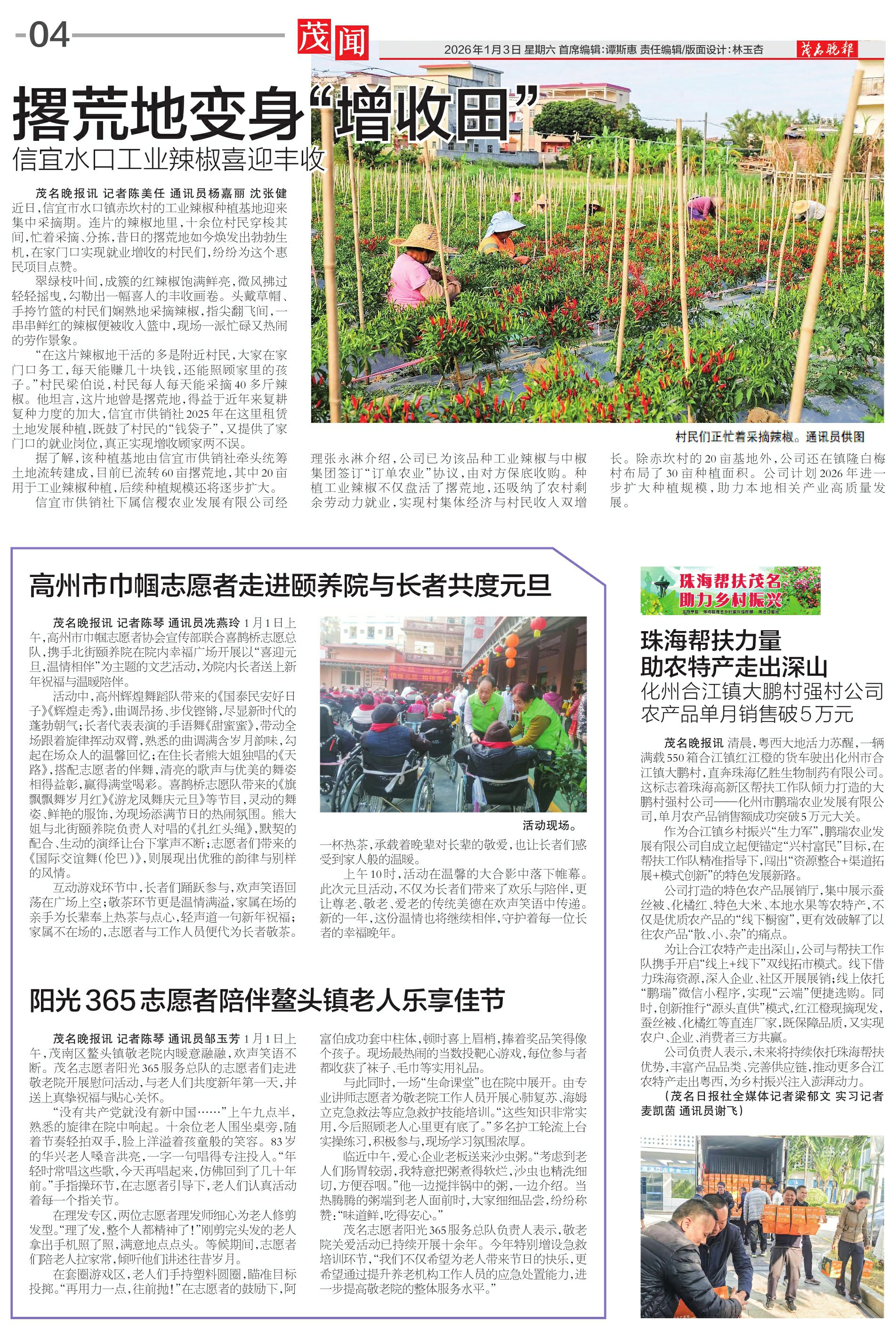 高州市巾帼志愿者走进颐养院与长者共度元旦