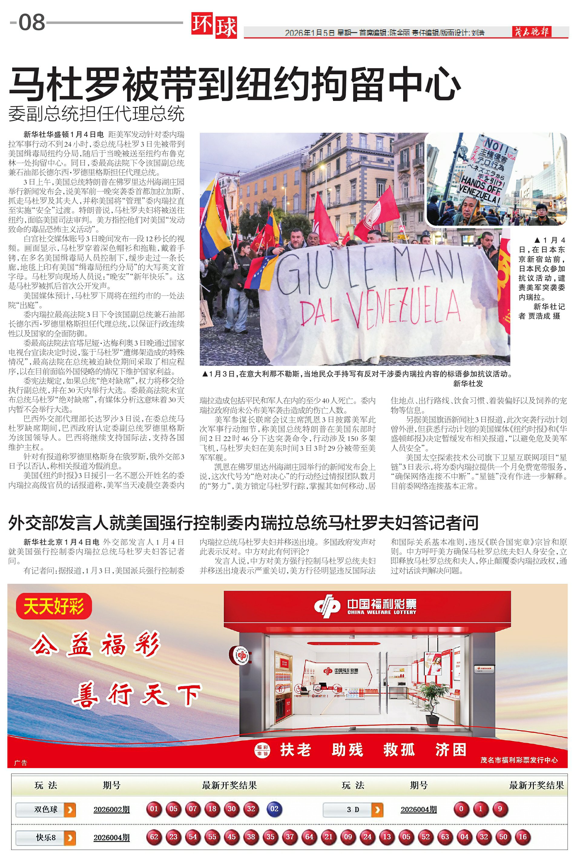 外交部发言人就美国强行控制委内瑞拉总统马杜罗夫妇答记者问