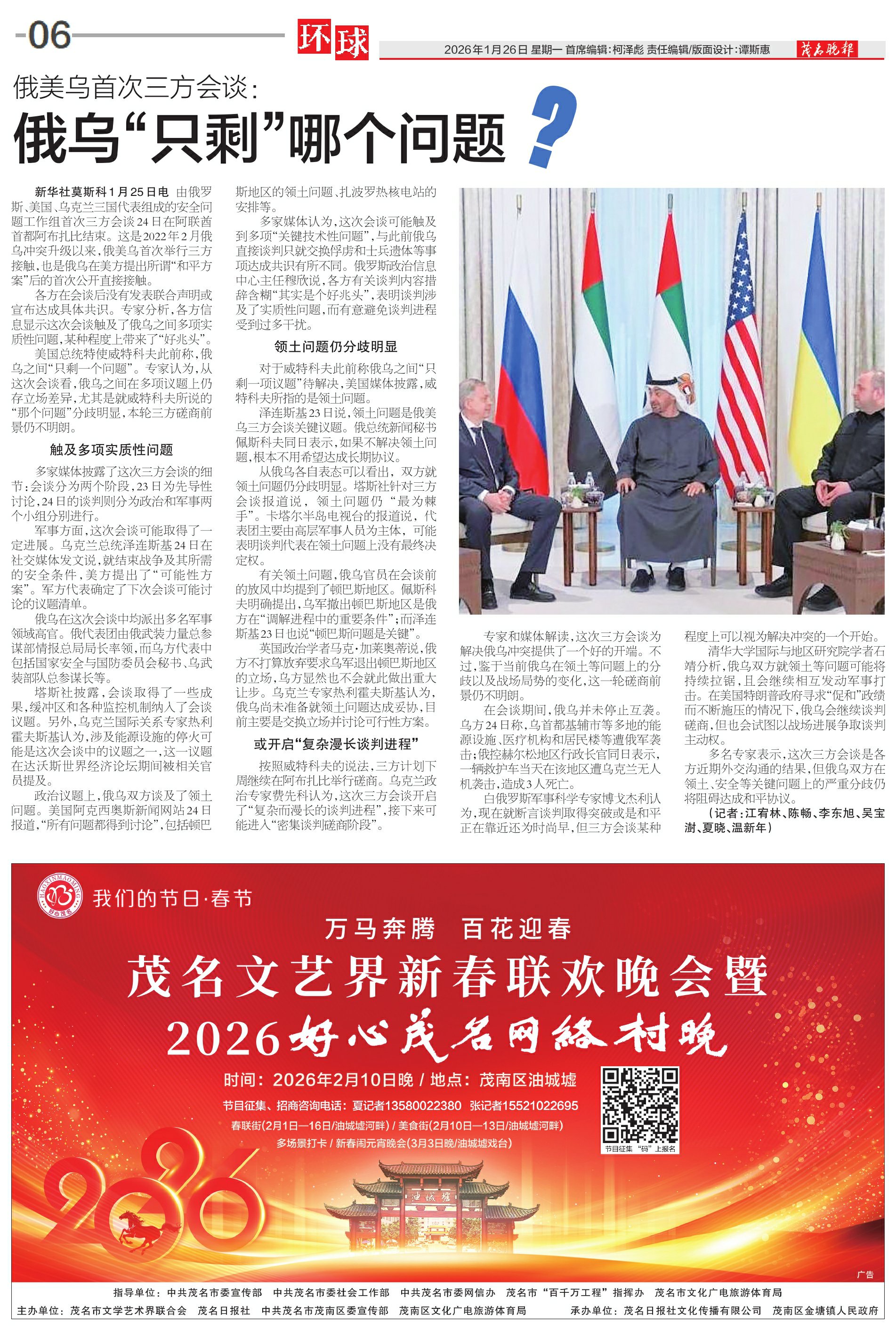 多名专家表示,这次三方会谈是各方近期外交沟通的结果,但俄乌双方在领土、安全等关键问题上的严重分歧仍将阻碍达成和平协议。