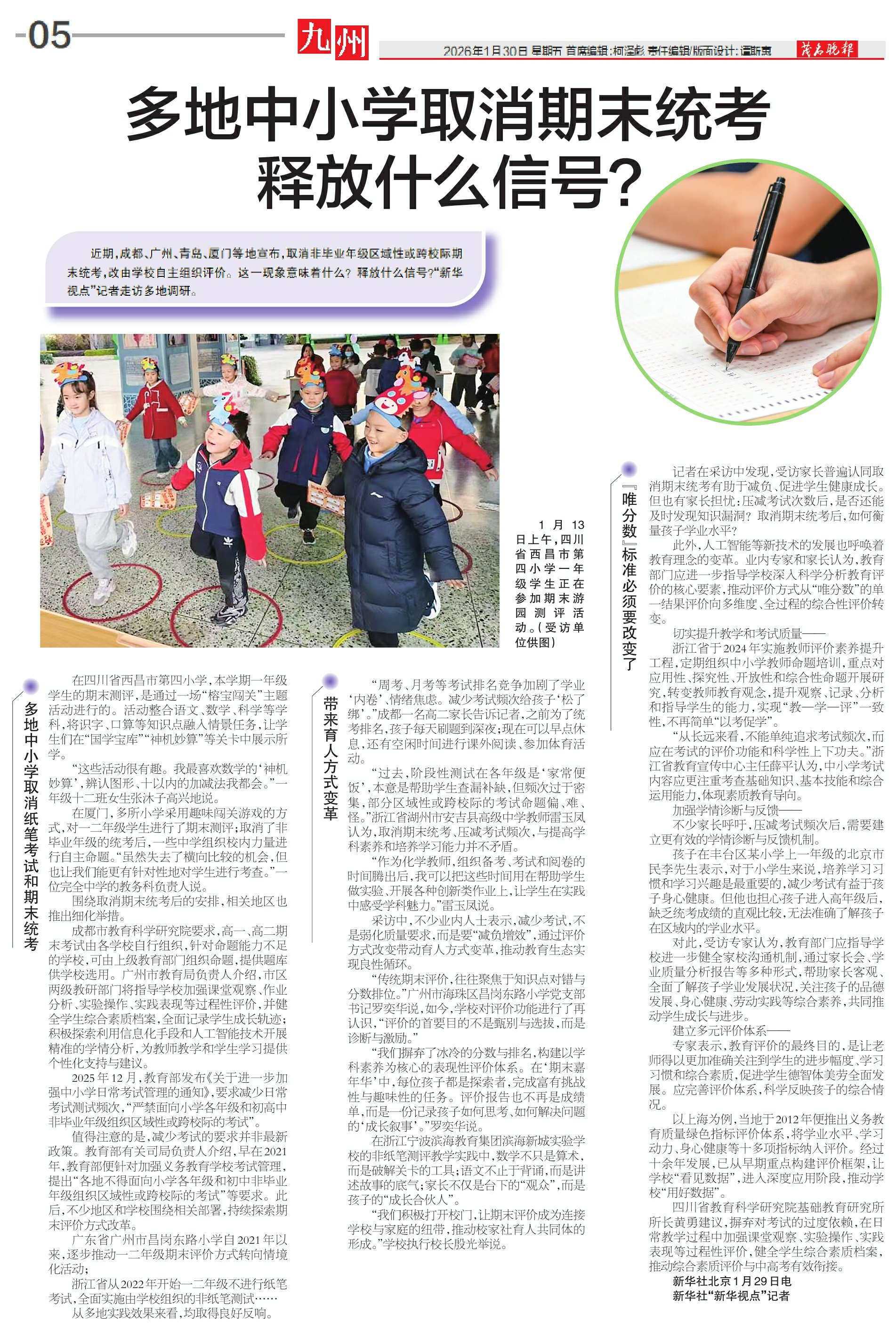 多地中小学取消纸笔考试和期末统考