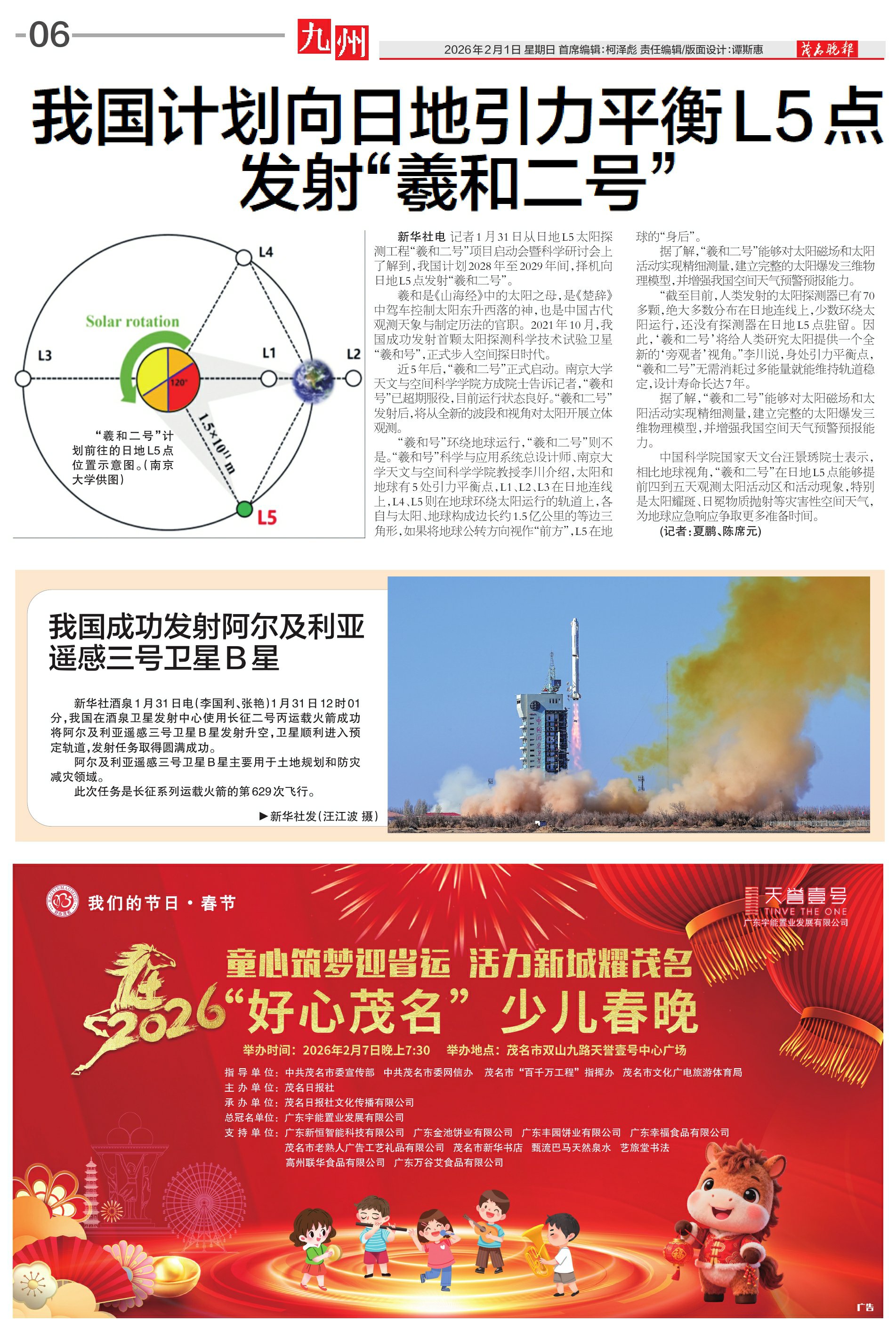 我国计划向日地引力平衡L5点发射“羲和二号”