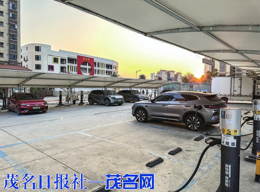 车辆充电桩使用中。茂名日报社全媒体记者 刘付思明 摄