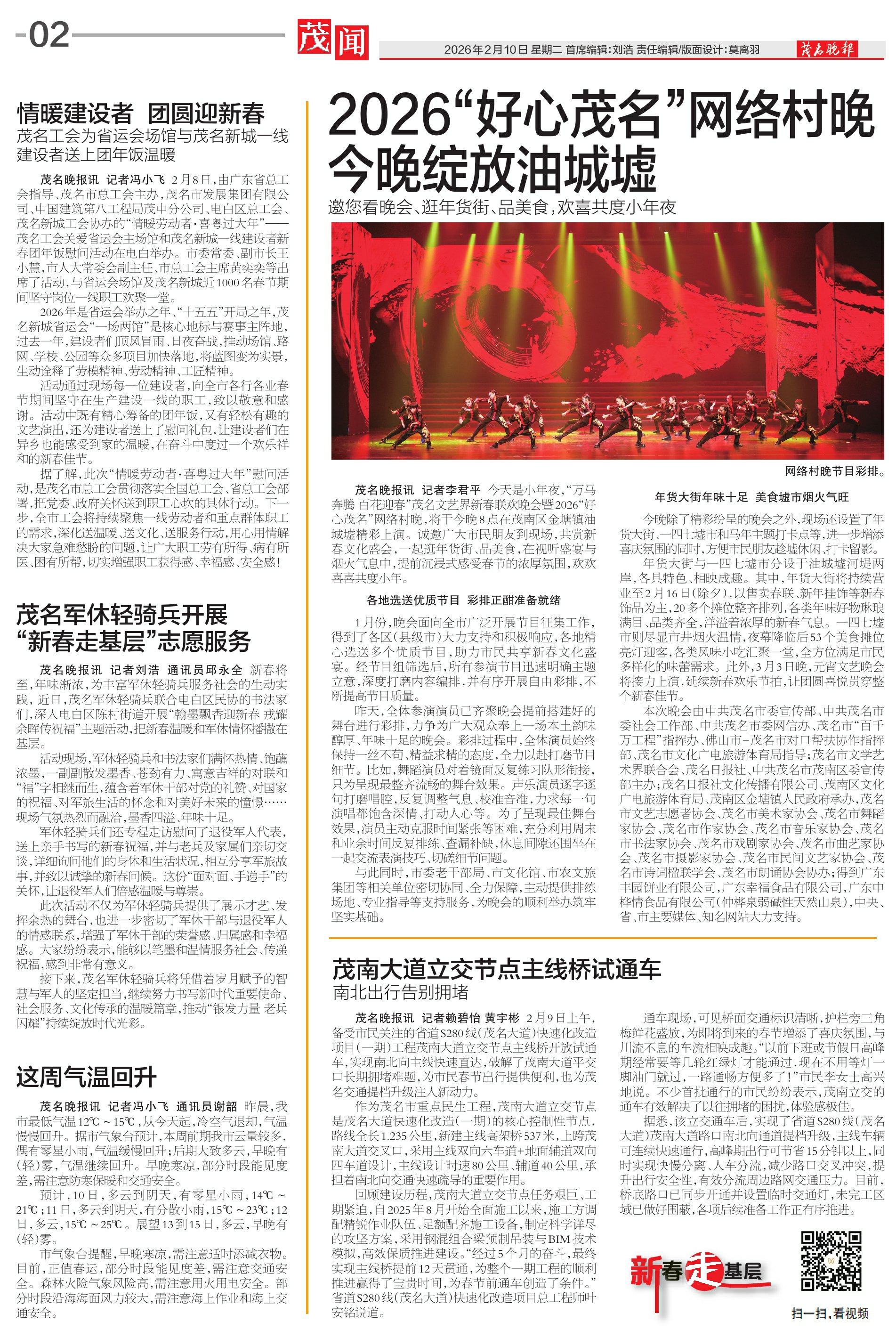 茂名晚报讯 记者 赖碧怡 黄宇彬 2月9日上午,备受市民关注的省道S280线(茂名大道)快速化改造项目(一期)工程茂南大道立交节点主线桥开放试通车,实现南北向主线快速直达,破解了茂南大道平交口长期拥堵难题,为市民春节出行提供便利,也为茂名交通提档升级注入新动力。