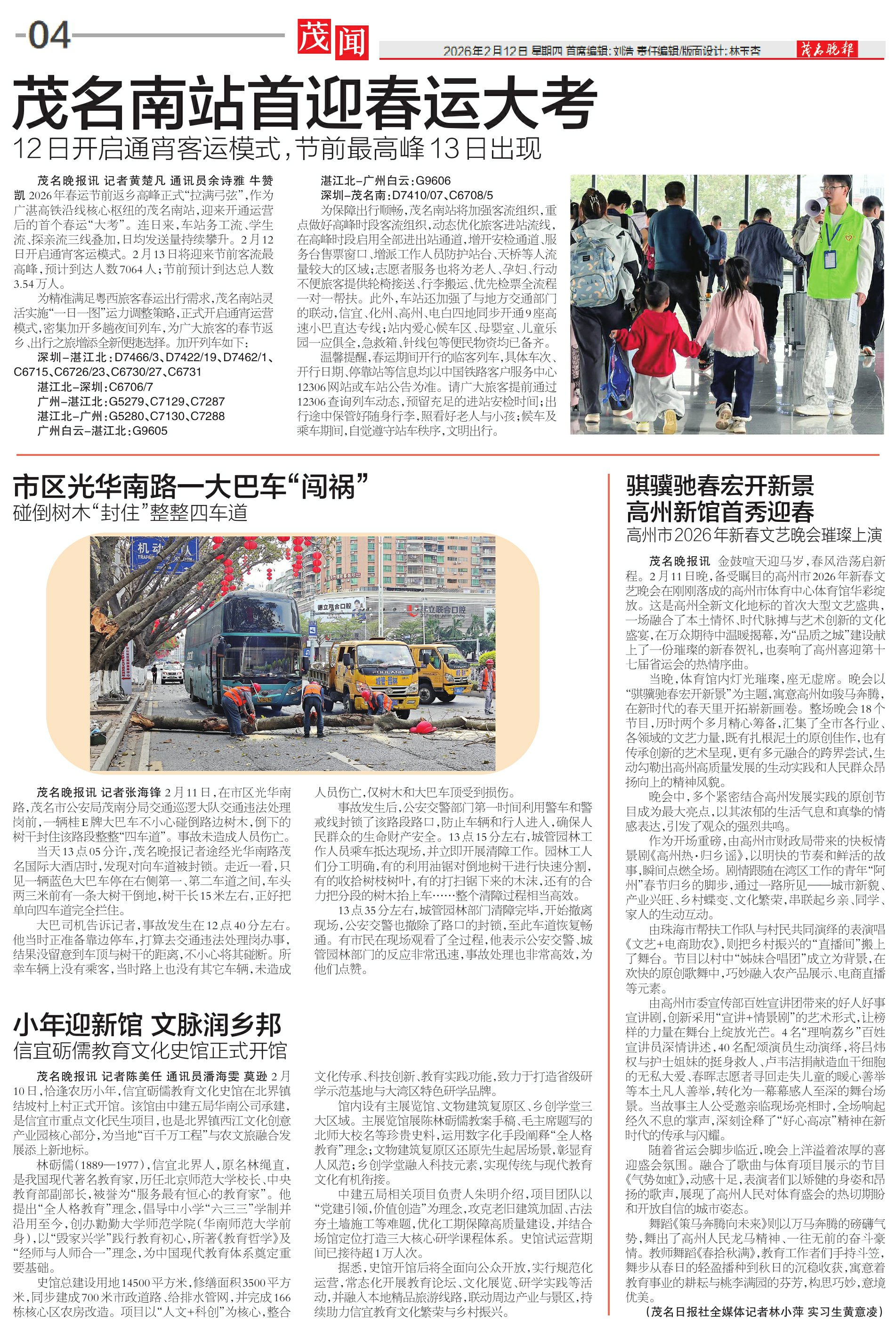 茂名晚报讯 记者 张海锋 2月11日,在市区光华南路,茂名市公安局茂南分局交通巡逻大队交通违法处理岗前,一辆桂E牌大巴车不小心碰倒路边树木,倒下的树干封住该路段整整“四车道”。事故未造成人员伤亡。