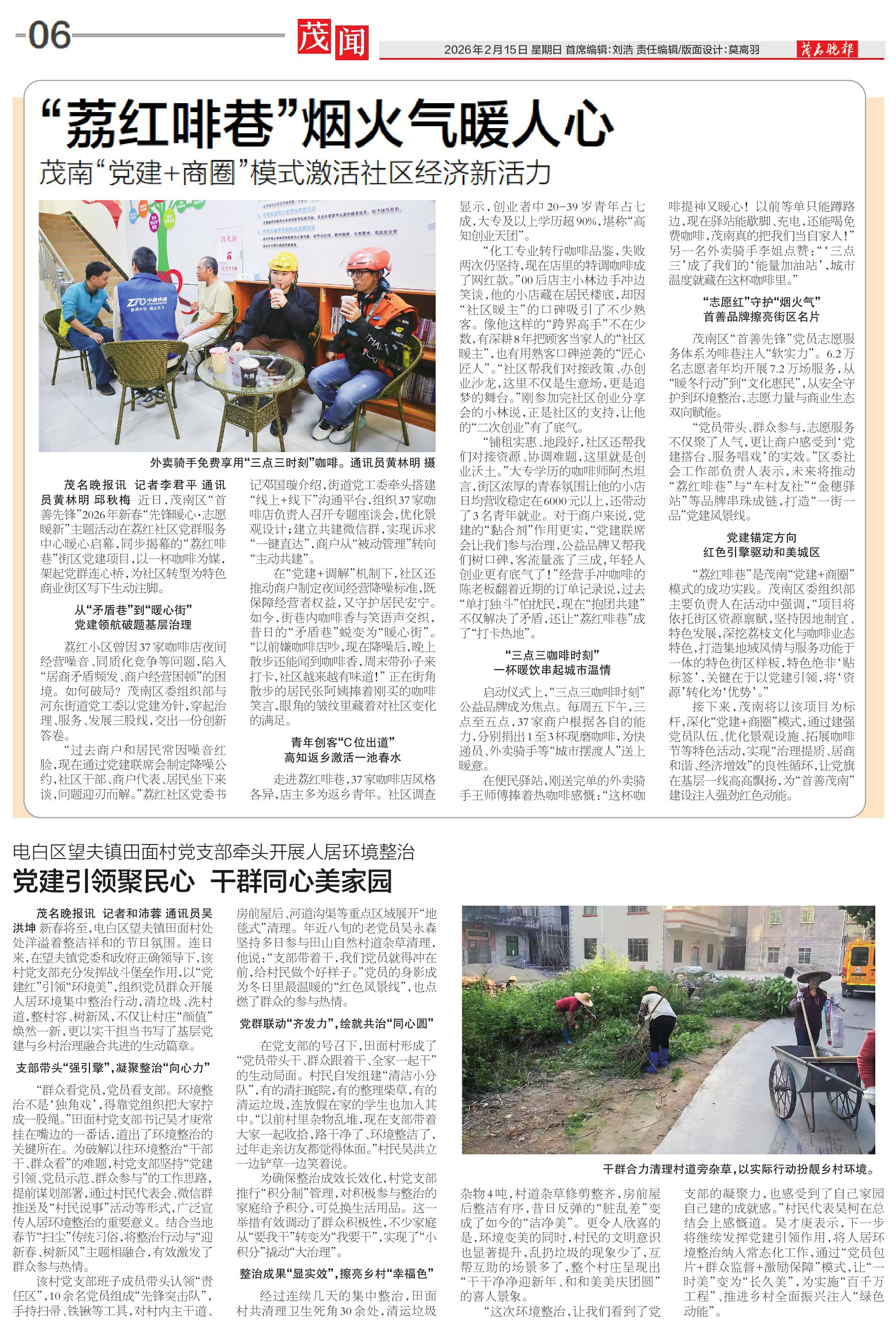 茂名晚报讯 记者 李君平 通讯员 黄林明 邱秋梅 近日,茂南区“首善先锋”2026年新春“先锋暖心·志愿暖新”主题活动在荔红社区党群服务中心暖心启幕,同步揭幕的“荔红啡巷”街区党建项目,以一杯咖啡为媒,架起党群连心桥,为社区转型为特色商业街区写下生动注脚。