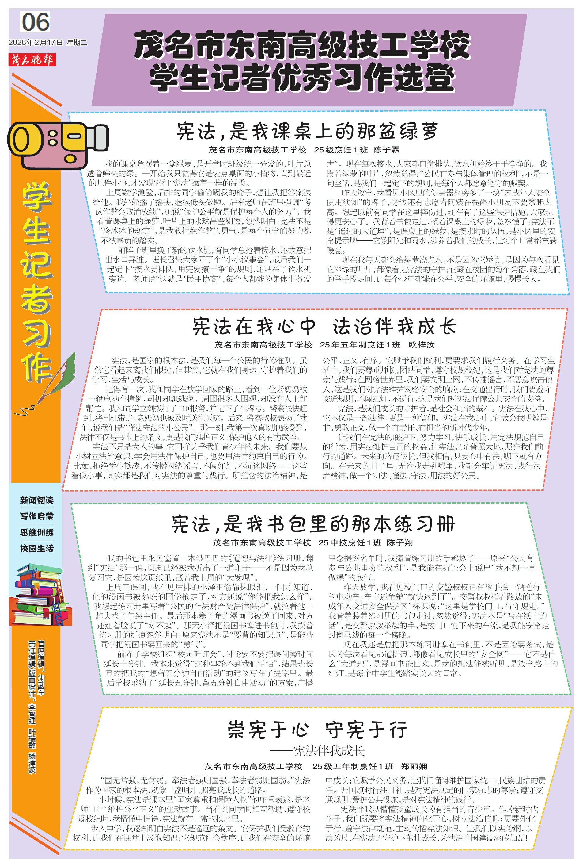 茂名市东南高级技工学校学生记者优秀习作选登