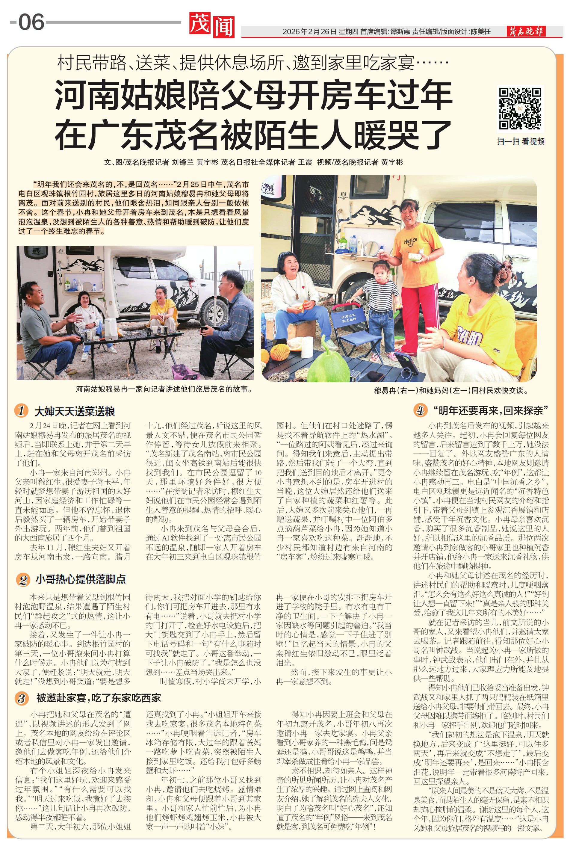 河南姑娘陪父母开房车过年 在广东茂名被陌生人暖哭了