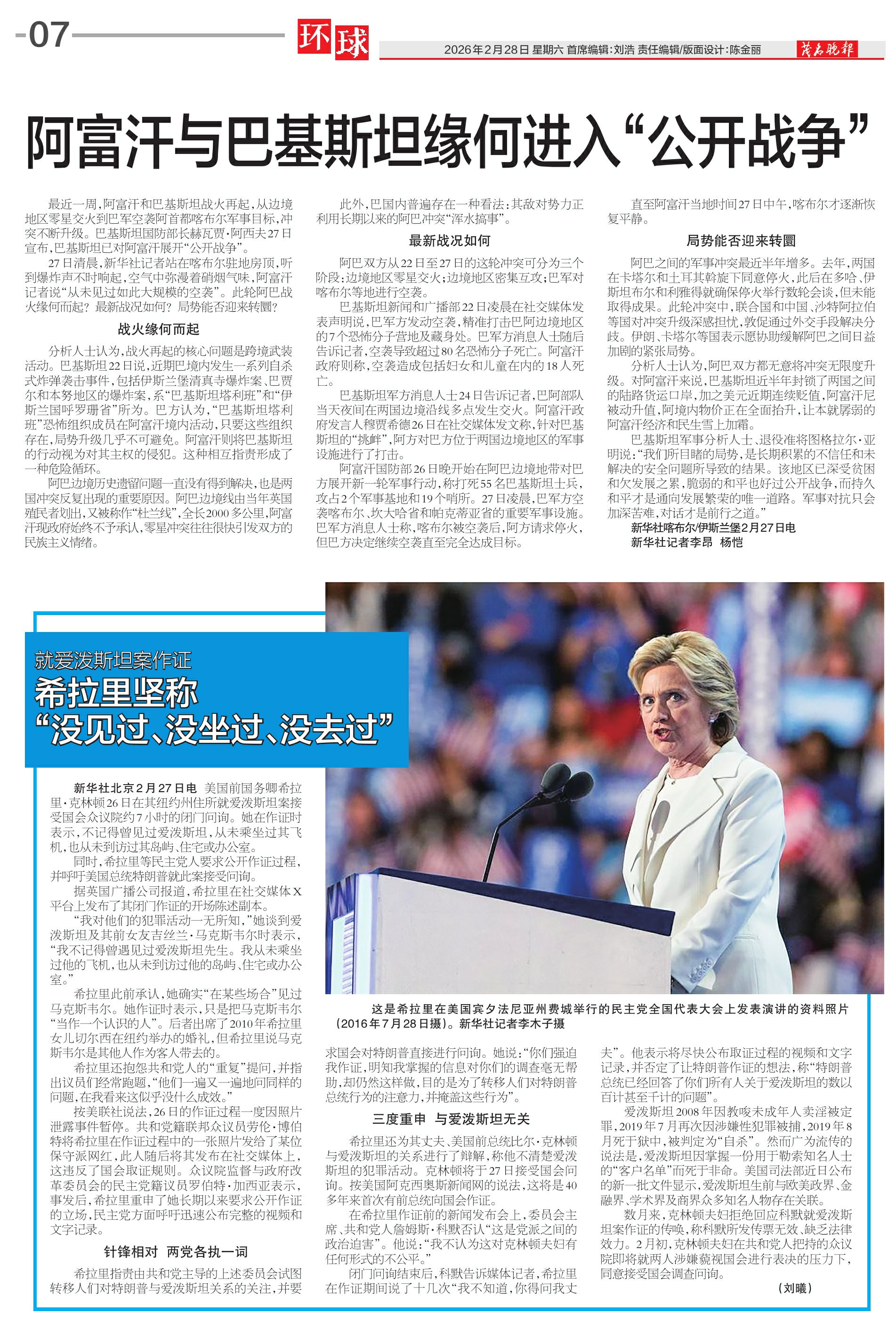 新华社喀布尔/伊斯兰堡2月27日电