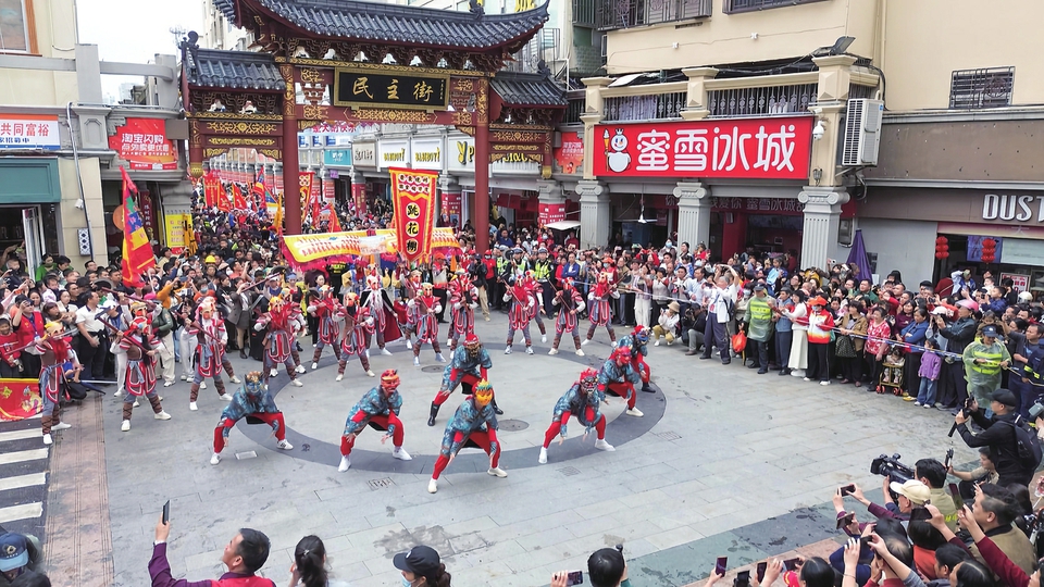 除此之外,还有独具地方特色的“走押舟”活动在河西街区举行。新街、民主二横巷、解放路、幸福路……押舟队伍穿行于老街巷,锣鼓声声,灯火摇曳,祈福纳祥,为嘉年华画上圆满句号。沿街居民纷纷开门迎接,祈愿新的一年风调雨顺、平安顺遂。