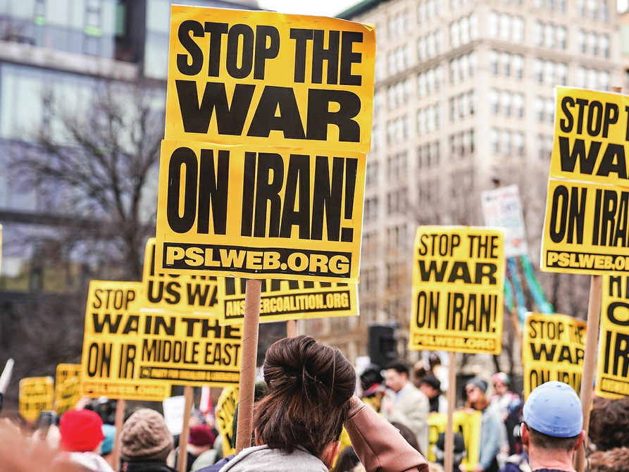 3月7日,人们在美国纽约参加集会游行,抗议美国和以色列对伊朗发动军事打击。 新华社记者 张凤国 摄