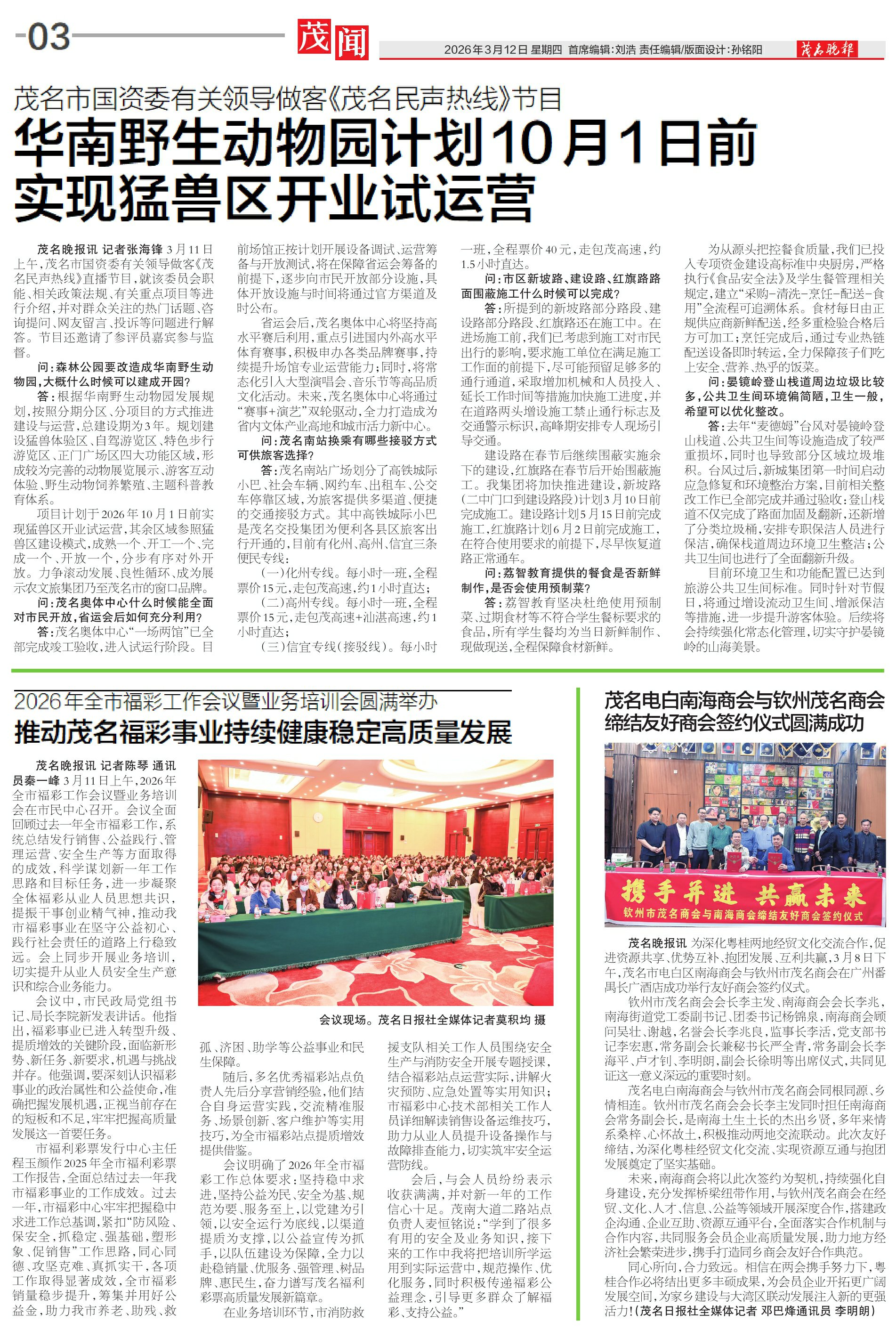 华南野生动物园计划10月1日前实现猛兽区开业试运营