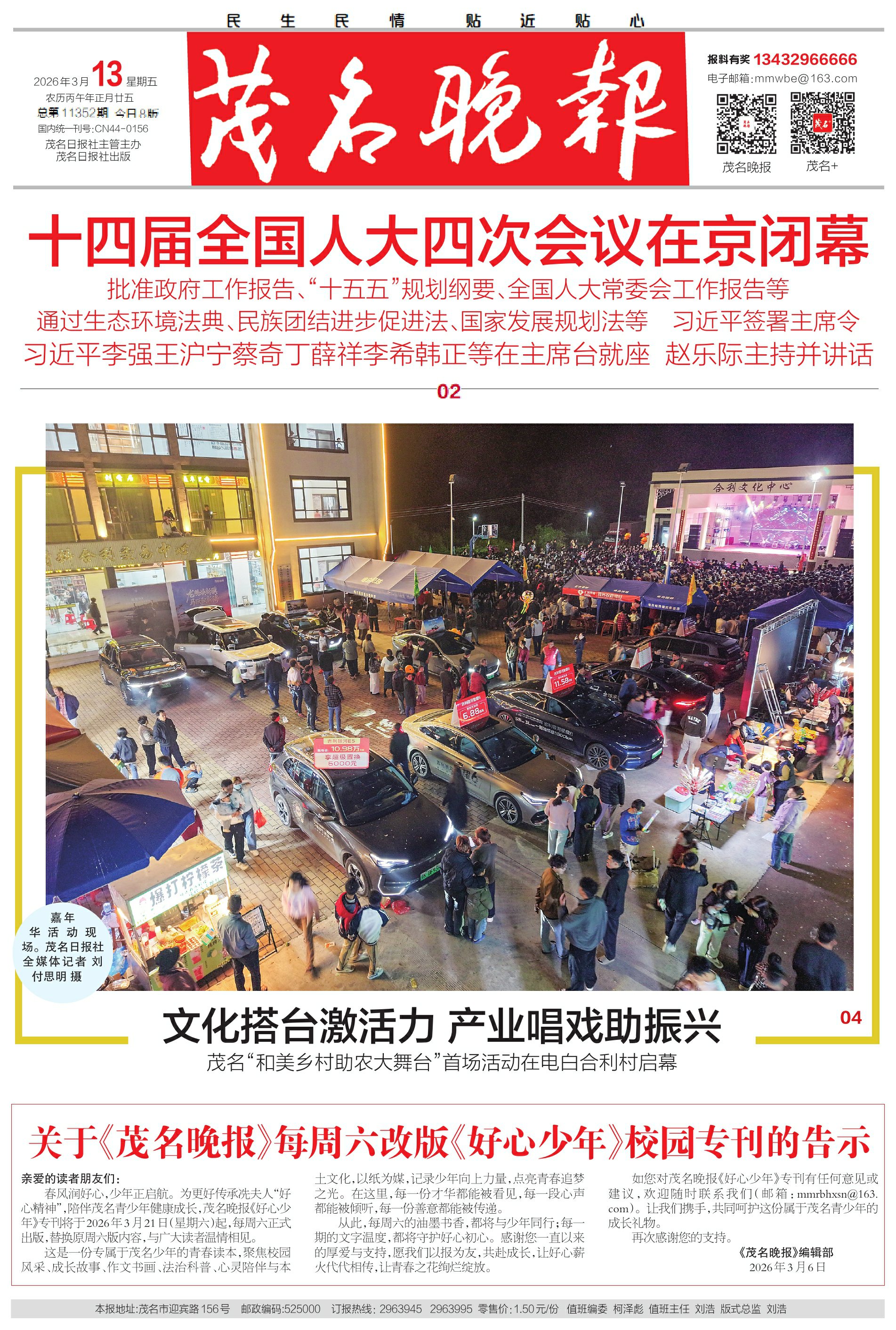 关于《茂名晚报》每周六改版《好心少年》校园专刊的告示