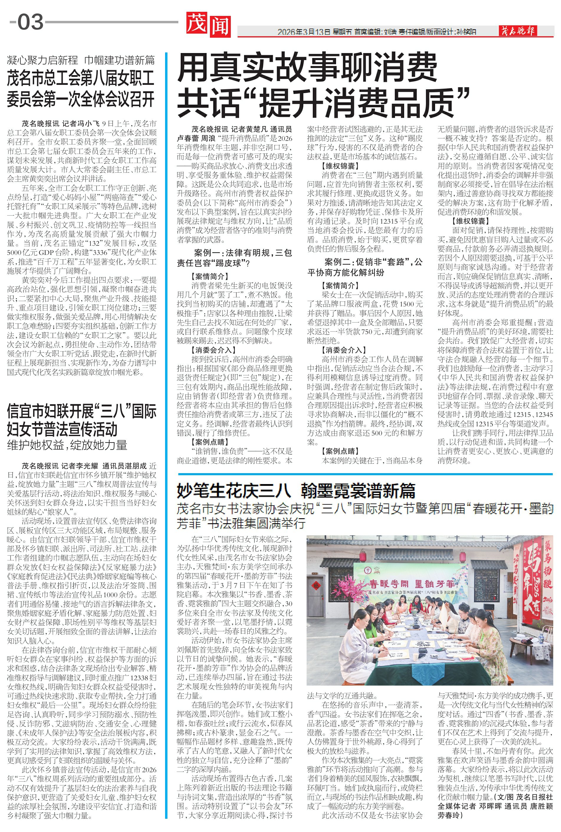 五年来,全市工会女职工工作守正创新、亮点纷呈,打造“爱心妈妈小屋”“两癌筛查”“爱心托管托育”“女职工风采展示”等特色品牌,选树一大批巾帼先进典型。广大女职工在产业发展、乡村振兴、创文巩卫、疫情防控等一线担当作为,为茂名高质量发展贡献了强大巾帼力量。当前,茂名正锚定“132”发展目标,攻坚5000亿元GDP台阶,构建“3336”现代化产业体系,推进“百千万工程”五年显著变化,为女职工施展才华提供了广阔舞台。