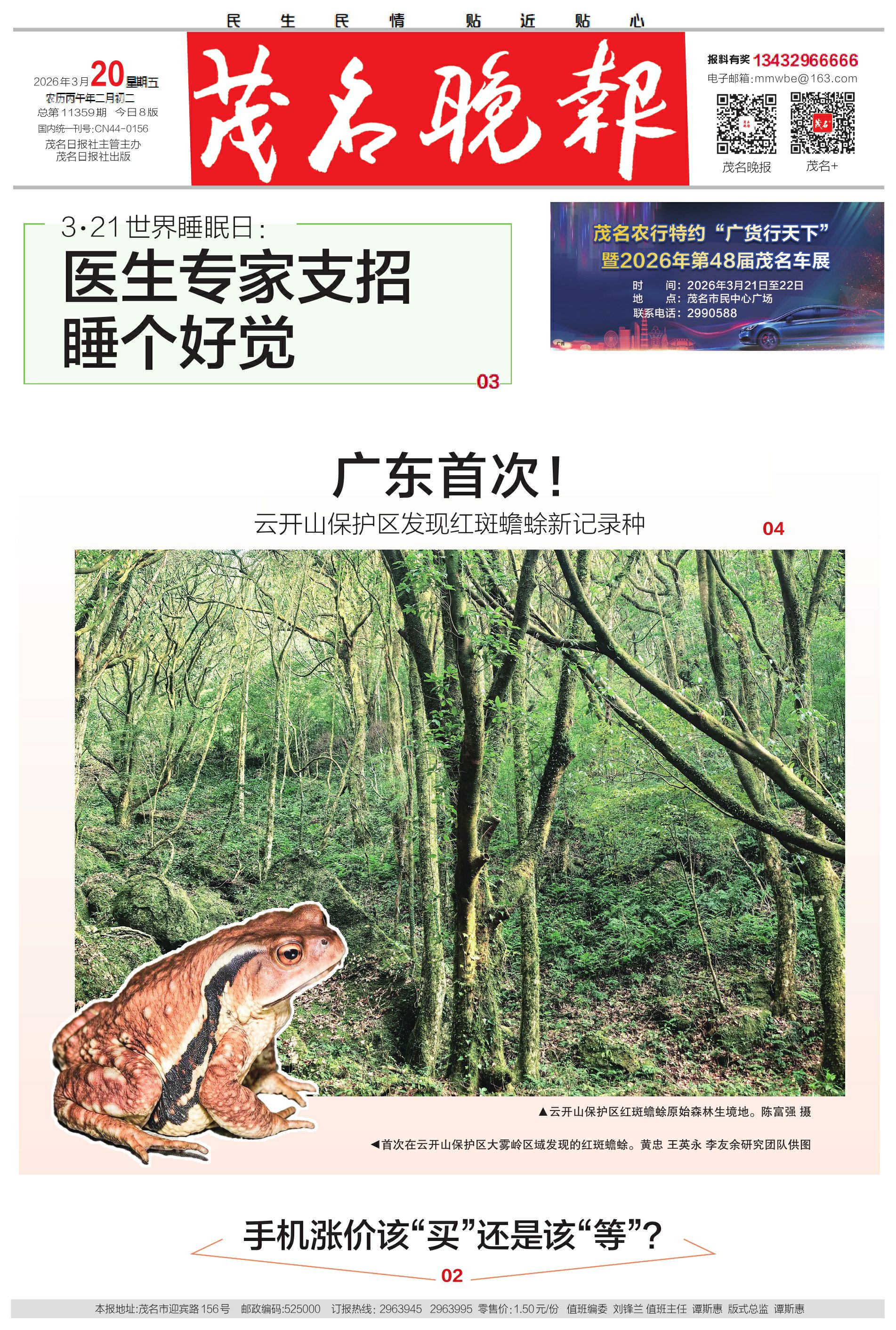 ◀首次在云开山保护区大雾岭区域发现的红斑蟾蜍。黄忠王英永李友余研究团队供图
