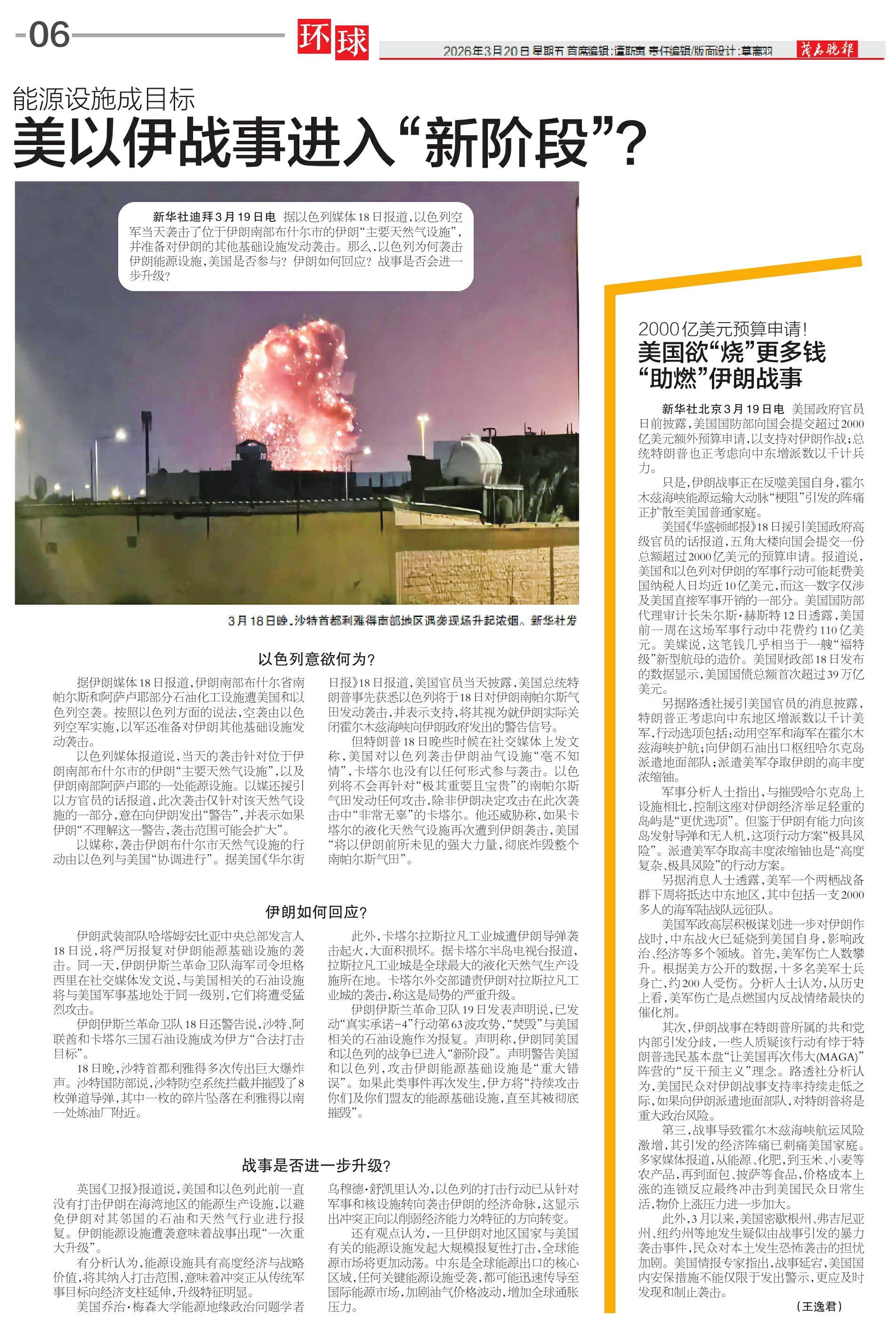 新华社北京3月19日电 美国政府官员日前披露,美国国防部向国会提交超过2000亿美元额外预算申请,以支持对伊朗作战;总统特朗普也正考虑向中东增派数以千计兵力。