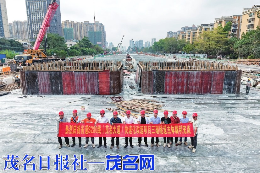 ▲省道S280线(茂名大道)快速化改造项目三期隧道主体顺利完成。