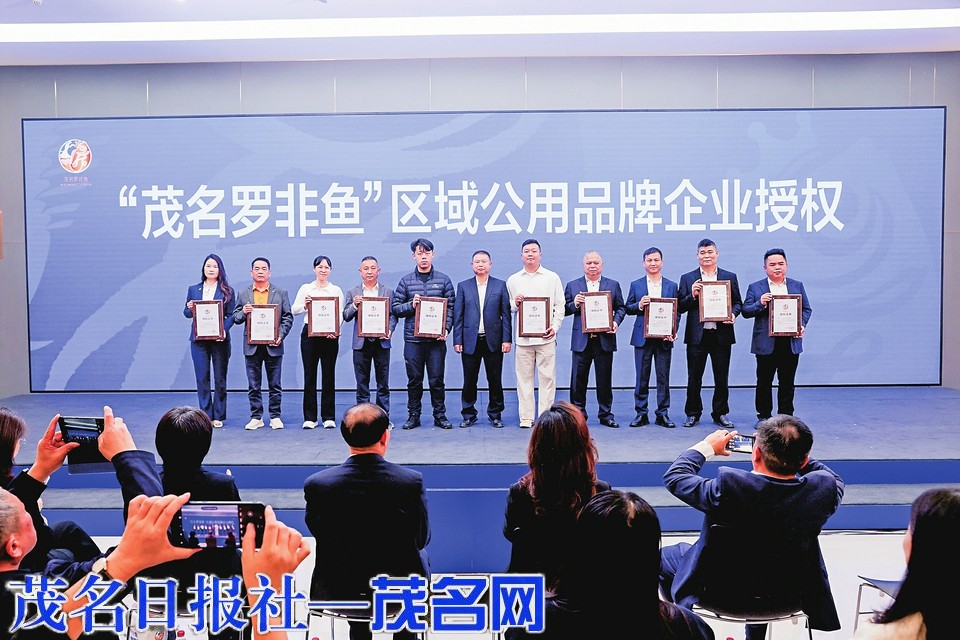 活动现场,8位来自茂名市的相关领导与行业嘉宾,共同通过大屏手印启动形式,正式揭晓“茂名罗非鱼”区域公用品牌全新LOGO和口号,宣告品牌正式亮相。活动同步举行首批品牌授权企业颁牌仪式,通过规范化的品牌授权管理,进一步强化产业集群协同效应,为品牌长效运营筑牢品质根基。