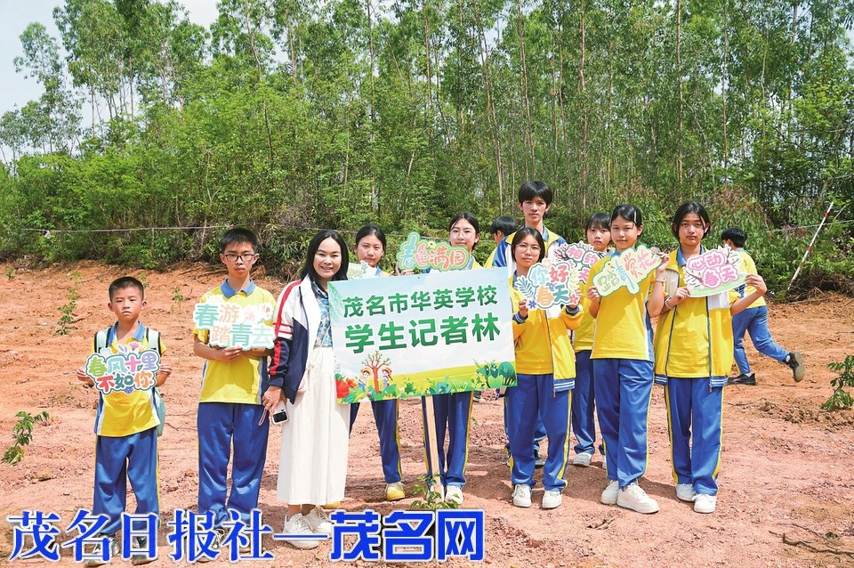 3月21日,茂名市华英学校百余名茂名日报社全媒体小记者走进茂南区镇盛镇那田村,开展以“春风十里,不如植树有你”为主题的植树活动,以实际行动为美丽乡村增添新绿,助力“百千万工程”。