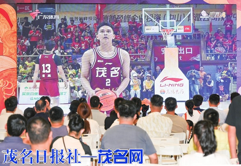 与此同时,线下观赛点人气爆棚,氛围感拉满。记者走访了位于爱琴海购物公园的茂名专属大屏观赛点,晚上7时许,观赛区便已座无虚席,早早赶来的球迷们有序落座,现场人头攒动、热闹非凡。大家或身着茂名队应援服,或手持应援棒,或在脸上贴着助威贴纸,满眼都是期待与热忱。随着现场氛围渐浓,整齐响亮的口号此起彼伏,“风华正茂,篮下扬名”“茂名加油,勇往直前”的呐喊声回荡在商场上空,铿锵有力,振奋人心。