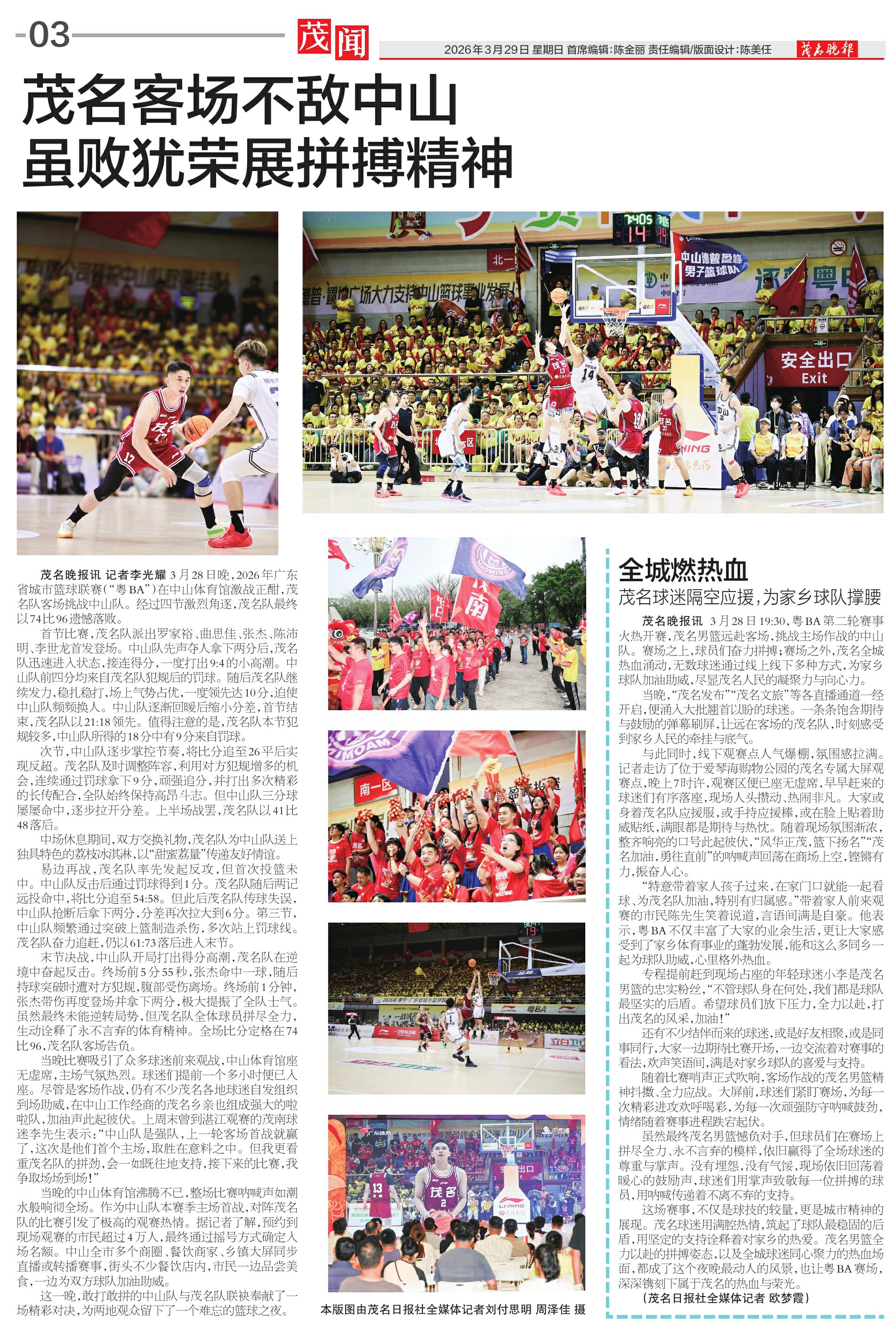 茂名客场不敌中山 虽败犹荣展拼搏精神