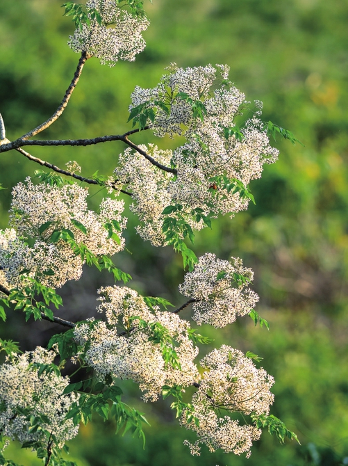 如今我离开故土在城市工作生活,苦楝树已成记忆剪影,可清明落花、祭前的嫩豆腐、盛夏的吱喳蝉鸣,依旧清晰。一树花开,是自然的恩赐;一树青果,是童年的欢颜;一树苍虬,是父亲挥之不去对大娘的思忆。苦楝树,缭绕着我童年的青涩,记述着一个小家庭的苦乐。