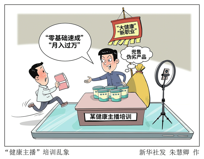 “健康主播”培训乱象。 新华社发 朱慧卿 作