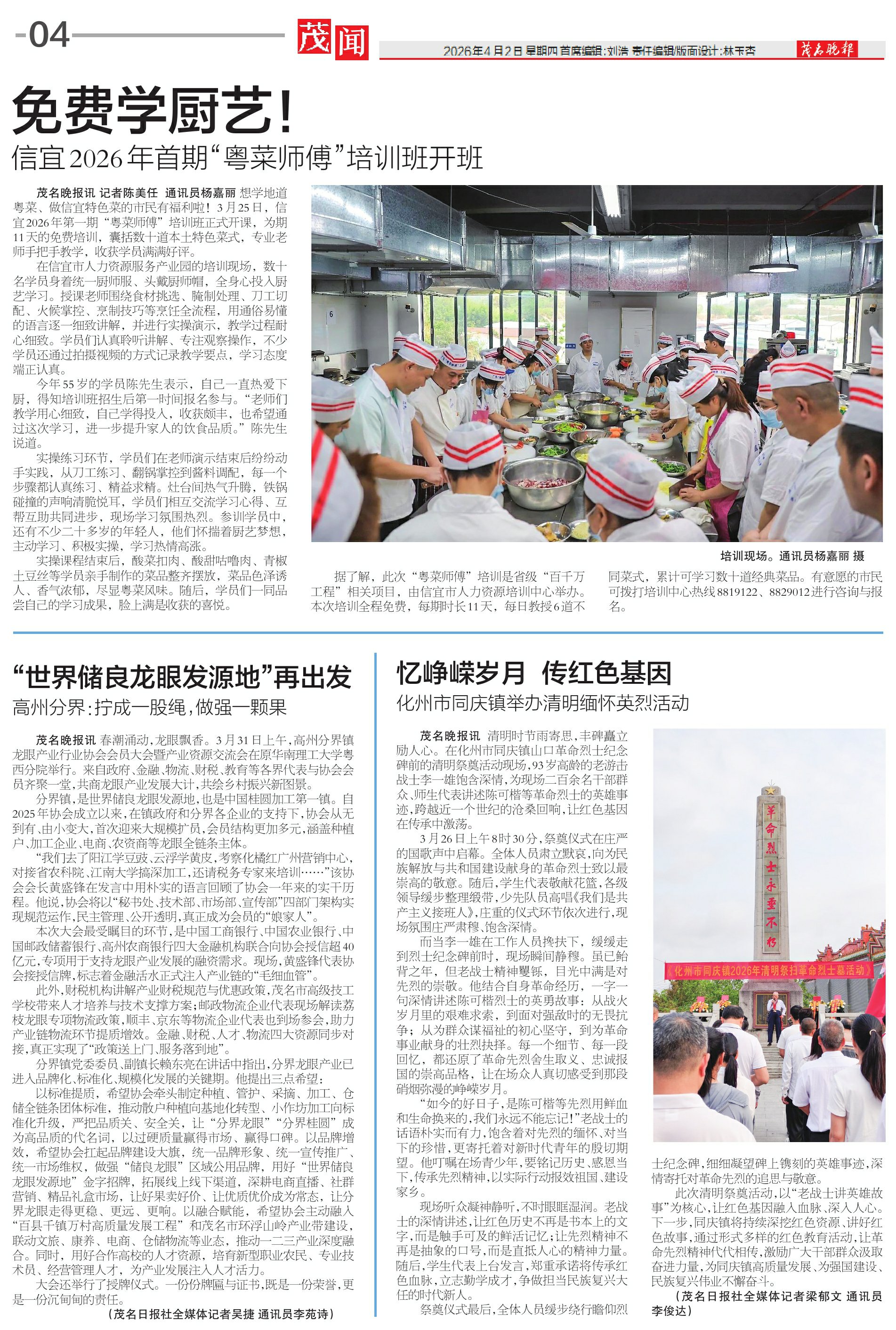 以标准提质,希望协会牵头制定种植、管护、采摘、加工、仓储全链条团体标准,推动散户种植向基地化转型、小作坊加工向标准化升级,严把品质关、安全关,让“分界龙眼”“分界桂圆”成为高品质的代名词,以过硬质量赢得市场、赢得口碑。以品牌增效,希望协会扛起品牌建设大旗,统一品牌形象、统一宣传推广、统一市场维权,做强“储良龙眼”区域公用品牌,用好“世界储良龙眼发源地”金字招牌,拓展线上线下渠道,深耕电商直播、社群营销、精品礼盒市场,让好果卖好价、让优质优价成为常态,让分界龙眼走得更稳、更远、更响。以融合赋能,希望协会主动融入“百县千镇万村高质量发展工程”和茂名市环浮山岭产业带建设,联动文旅、康养、电商、仓储物流等业态,推动一二三产业深度融合。同时,用好合作高校的人才资源,培育新型职业农民、专业技术员、经营管理人才,为产业发展注入人才活力。