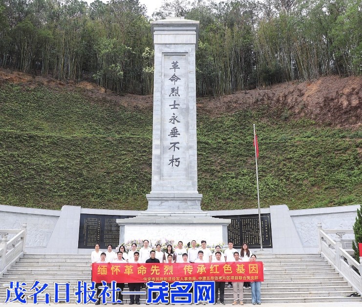 茂名晚报讯 记者陈美任 通讯员舒璇 莫逊 4月2日,中建五局信宜片区项目联合党支部携手信宜市民政和退役军人事务局,在信宜市革命烈士陵园开展“缅怀革命先烈传承红色基因”主题党日活动,缅怀革命先烈,凝聚奋进力量。