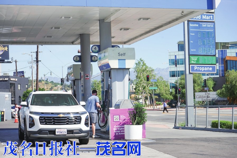 3月17日,顾客在美国加利福尼亚州洛杉矶市中心的一家加油站给车辆加油。新华社发(曾慧摄)