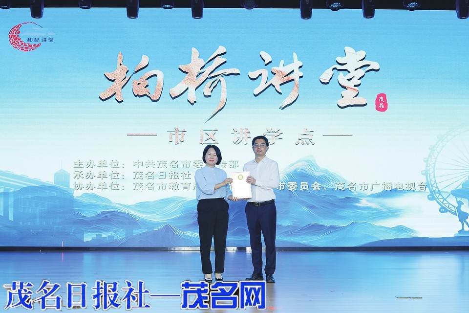 在茂名“柏桥讲堂”市区讲学点系列讲座第四期活动中,北京大学物理学院博雅特聘教授、国家杰出青年科学基金获得者、茂名一中杰出校友朱华星回到家乡,带来《传播前沿物理知识 赋能科技创新发展》科普讲座。现场,茂名日报社《好心少年》编辑部正式为他颁发聘书,聘请朱华星担任科学素养导师,为茂名青少年点亮科学灯塔。这位从茂名走出去的顶尖物理学家,用真诚话语和家乡青少年分享成长、物理与梦想。