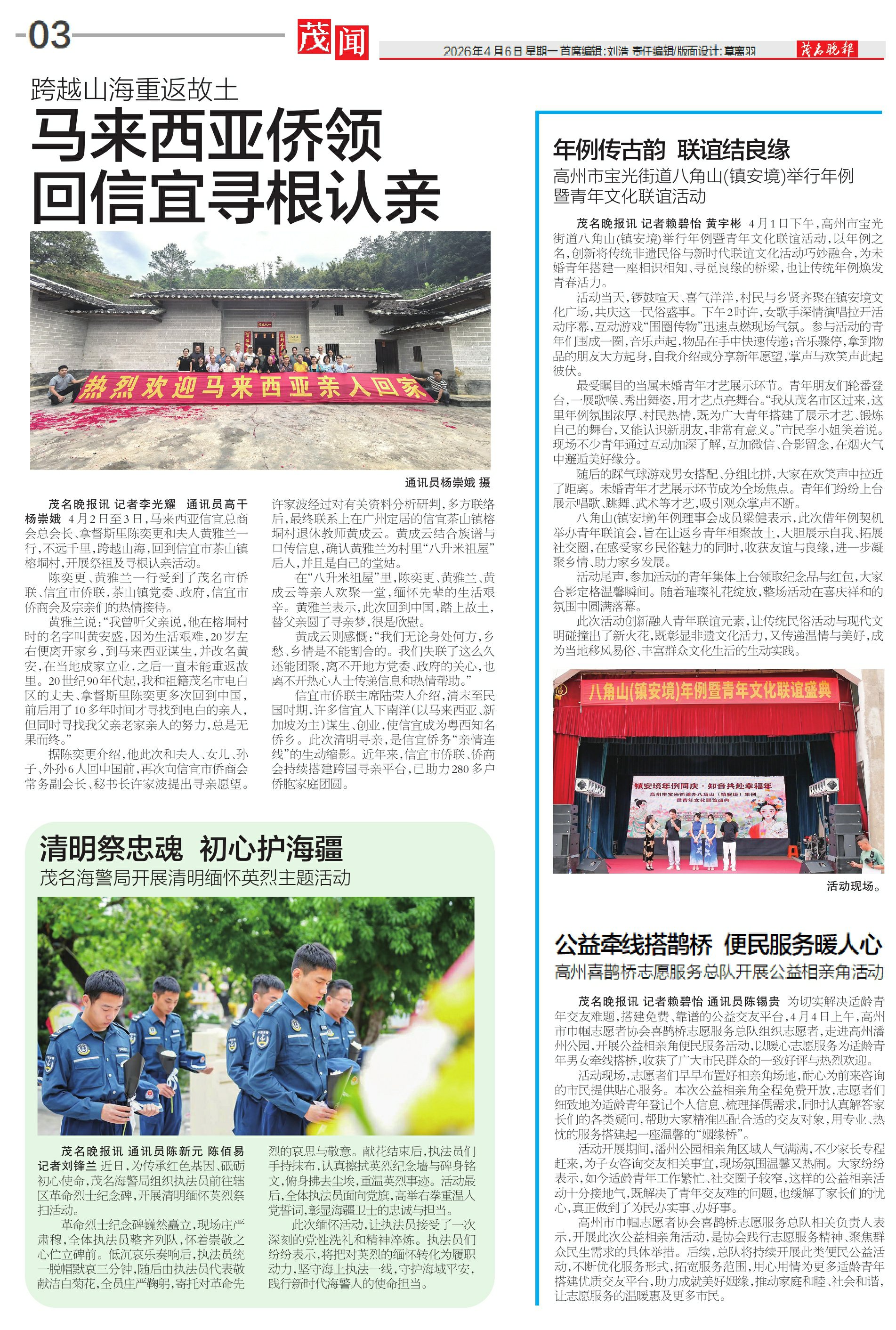 茂名晚报讯 通讯员 陈新元 陈佰易 记者 刘锋兰 近日,为传承红色基因、砥砺初心使命,茂名海警局组织执法员前往辖区革命烈士纪念碑,开展清明缅怀英烈祭扫活动。