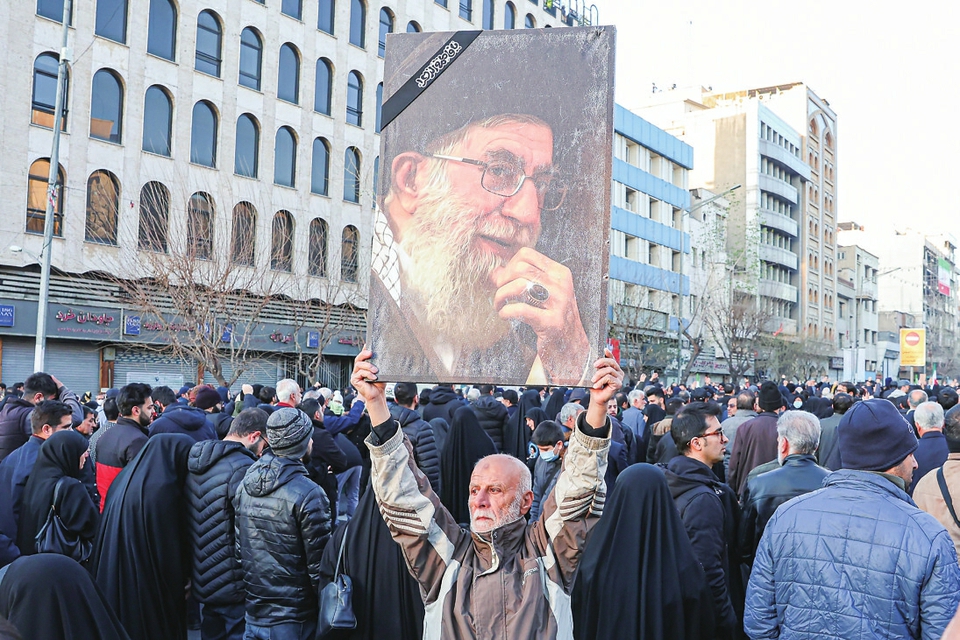 3月1日,伊朗民众在首都德黑兰集会,哀悼在美以袭击中被击杀的前最高领袖哈梅内伊。新华社/迈赫尔通讯社