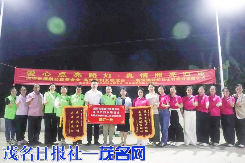 茂名晚报讯 记者 黄楚凡 通讯员 梁彩虹 叶林霞 近日,深圳市福顺公益基金会、高州市妇女联谊会携手走进高州市新垌镇云炉社山村,举行太阳能路灯捐赠仪式。