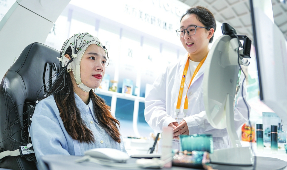 在1号馆,梦陀螺深睡小屋人气高涨,不少逛累了的观众在此排队体验,给自己“充电”。梦陀螺深睡小屋集团中国区执行官李景明说,深睡小屋的数字化深睡服务系统,集睡眠评估、干预、康养于一体。“希望构建睡眠健康新场景、激活新消费,让更多人拥有好睡眠。”