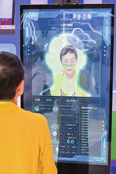4月14日,参观者在第六届消博会现场体验人工智能健康筛查系统。新华社记者 郭程 摄